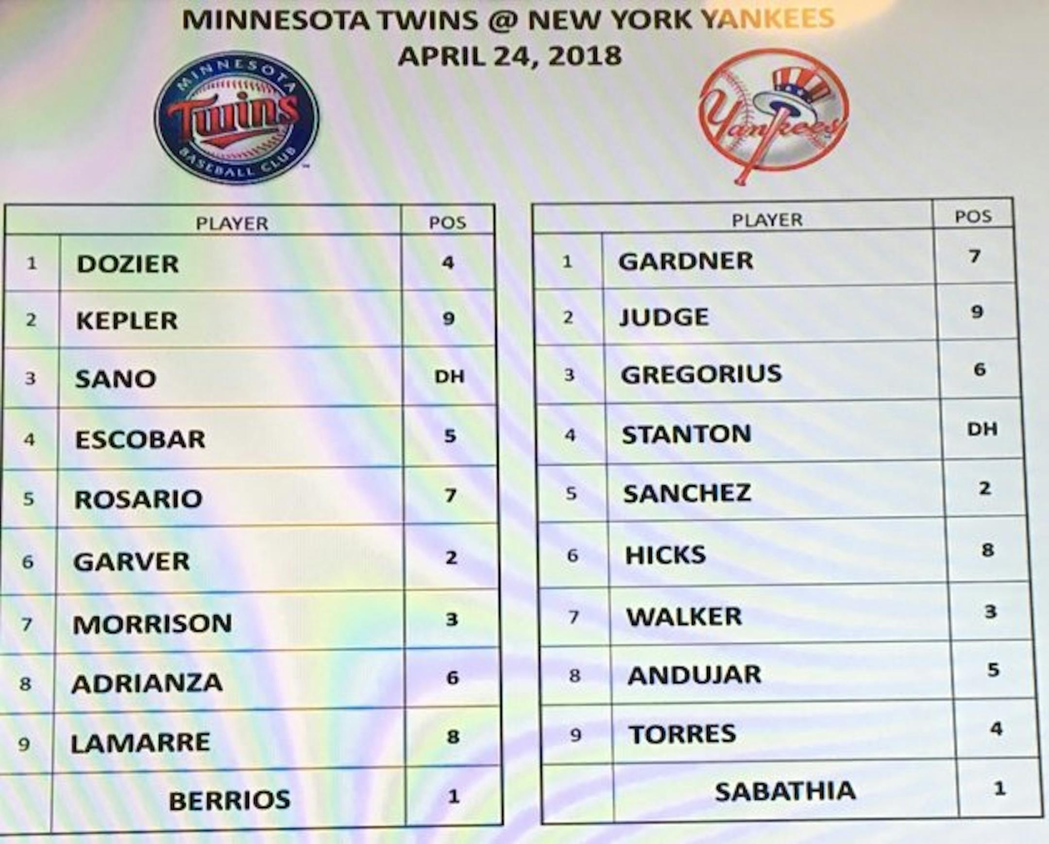 Here are the lineups for tonight's 5:35 game ...