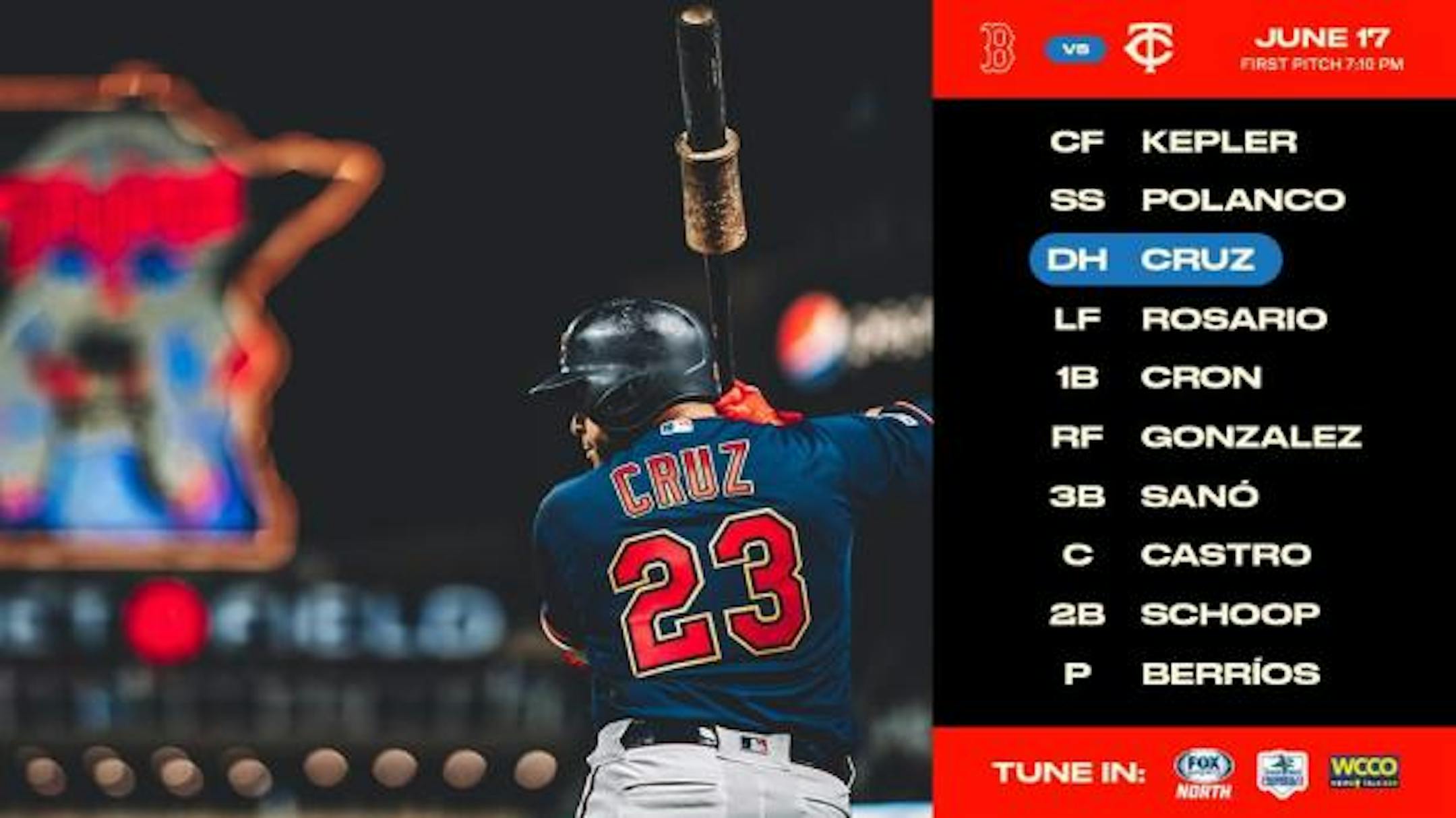 The Twins lineup, with Byron Buxton (wrist) still out:
