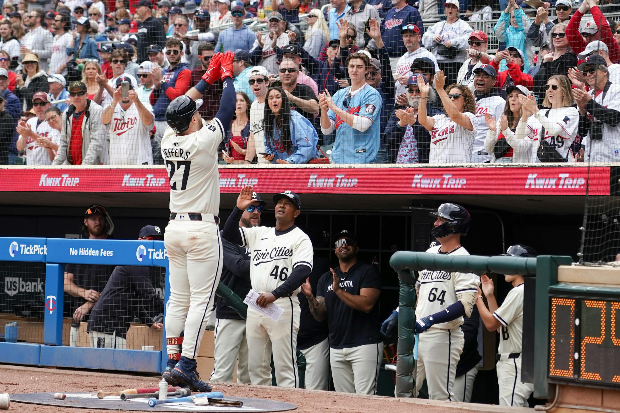 With more time to work on his swing last winter, Jeffers looks like he’s transforming from a good hitter to one of the best in the majors. Jeffers, who homered in Thursday’s 11-1 victory over the Mariners, is batting .306 with eight homers and 29 RBI in 33 games. His .631 slugging percentage is third in MLB, trailing only the Dodgers’ Shohei Ohtani and Atlanta’s Marcell Ozuna.