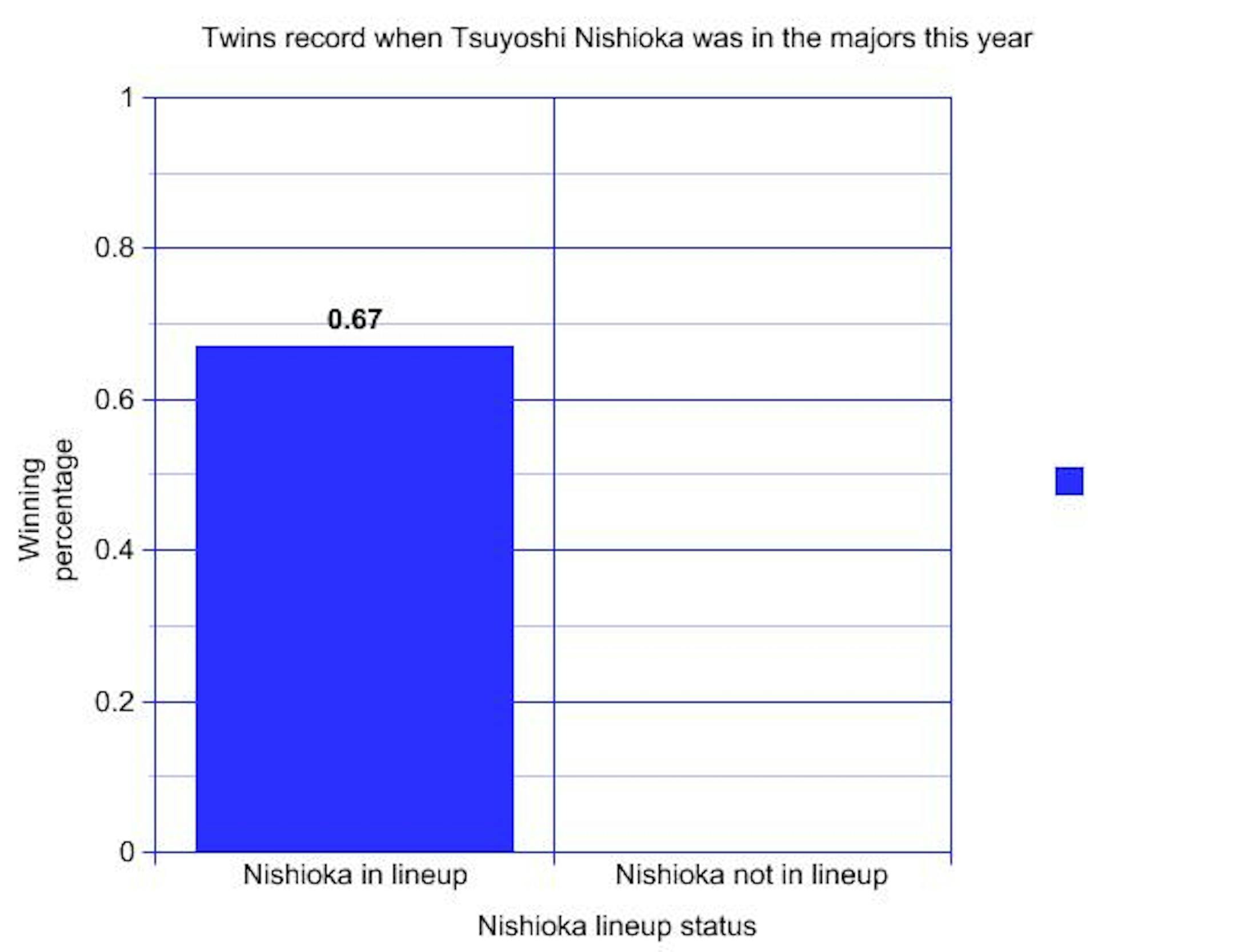 Tsuyoshi Nishioka was sent to Class AAA Rochester to make room for Trevor Plouffe. Many are hailing the move as an "about time" kind of thing. But we have some numbers that might make you think differently, conveniently presented in the form of a bar graph: