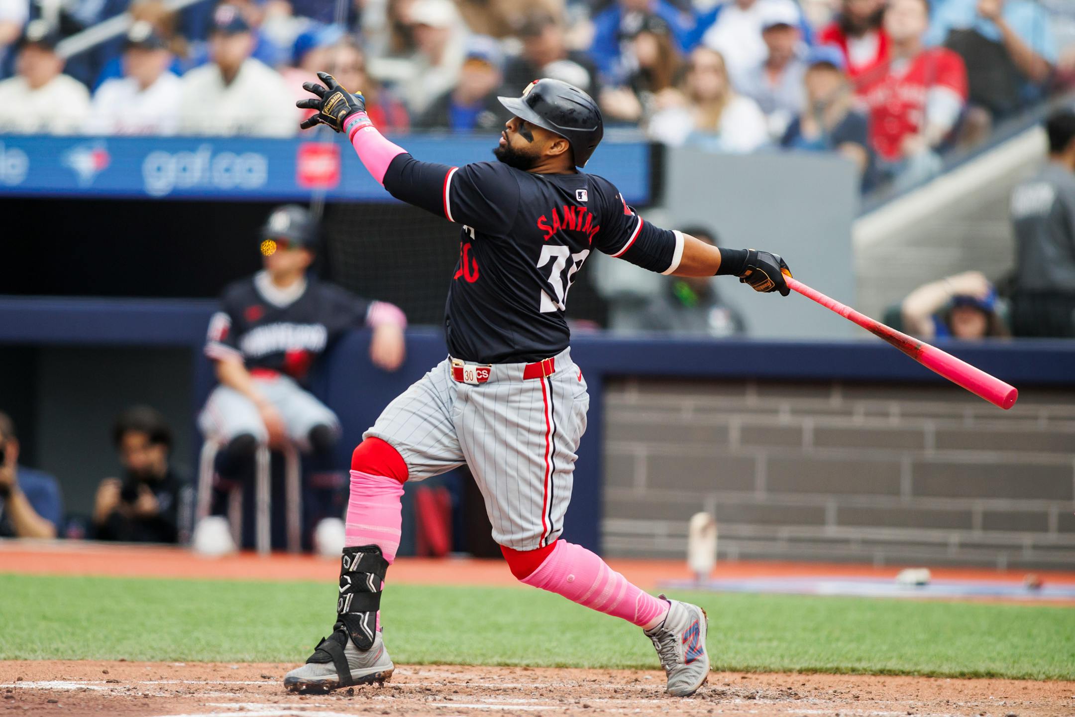 TORONTO – Something must have been wrong with the pink bats the Twins and Blue Jays used to celebrate Mother’s Day on Sunday. For the first 90 minutes, only Carlos Santana’s seemed to work.