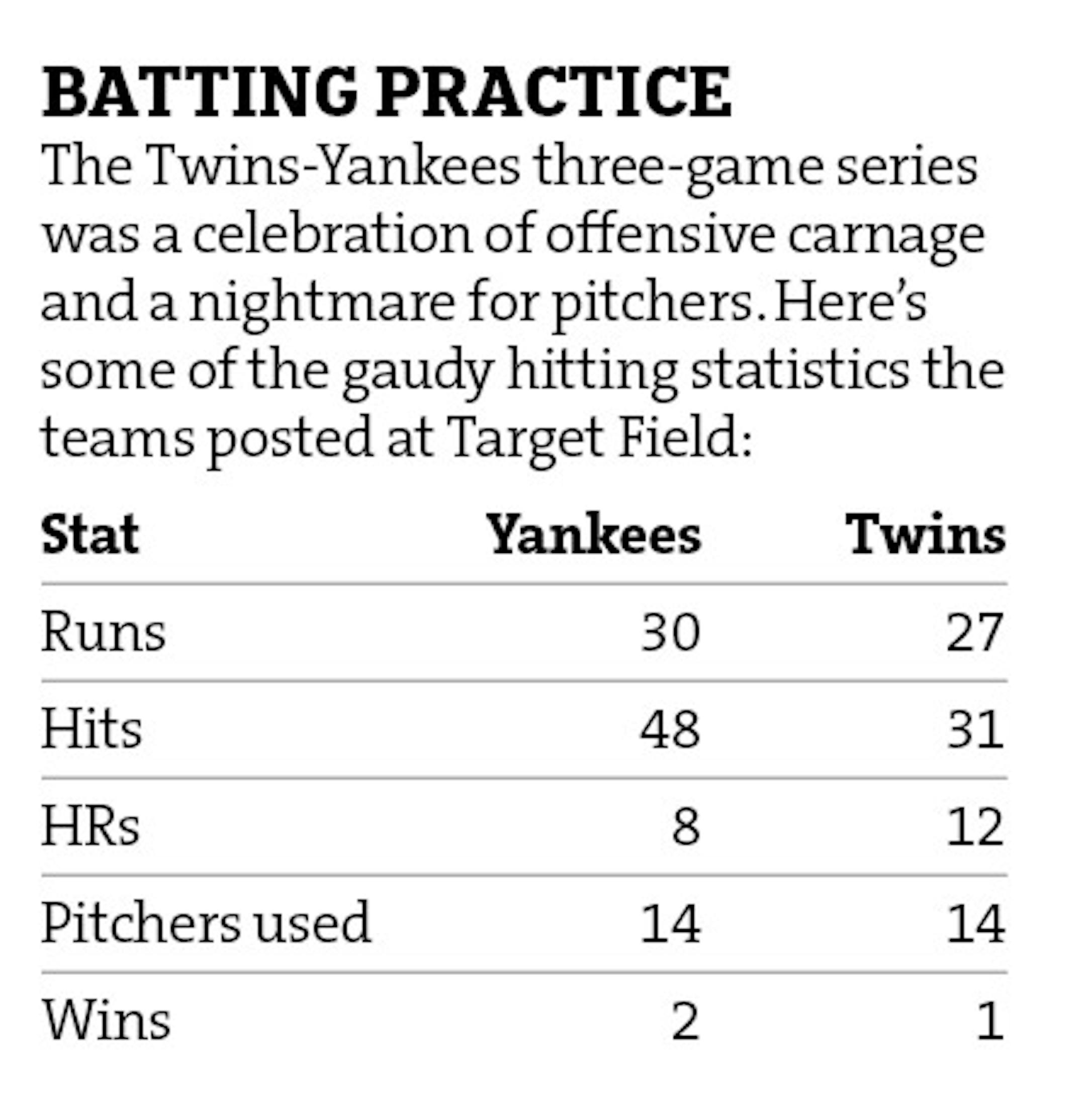 The Twins-Yankees three-game series was a celebration of offensive carnage and a nightmare for pitchers.
