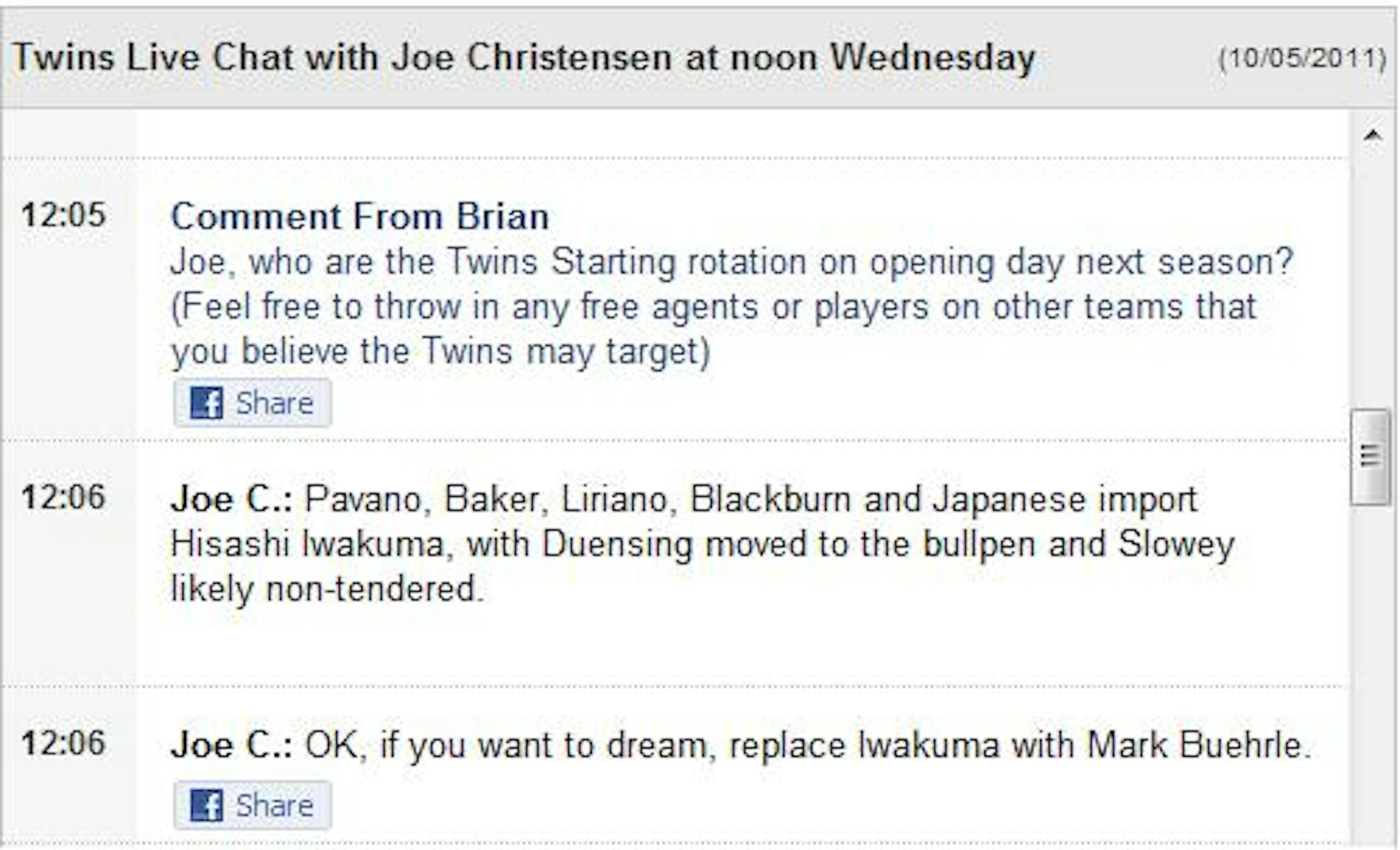 In his recent Star Tribune chat, Joe Christensen speculated that the Twins would target free agent pitcher Hisashi Iwakuma this winter: