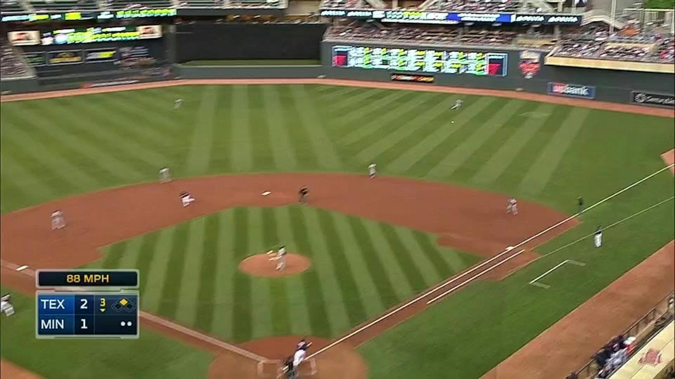 In this last series, the Texas Rangers tried the same positioning. Rather than Yu Darvish on the mound however, the Rangers trotted former Twins pitcher Scott Baker to start. Baker's stuff is not nearly as good as Darvish's so when the former teammates squared off, Mauer was able to turn around an 88-mile per hour fastball on the inner-half into that right field corner where no one was home.