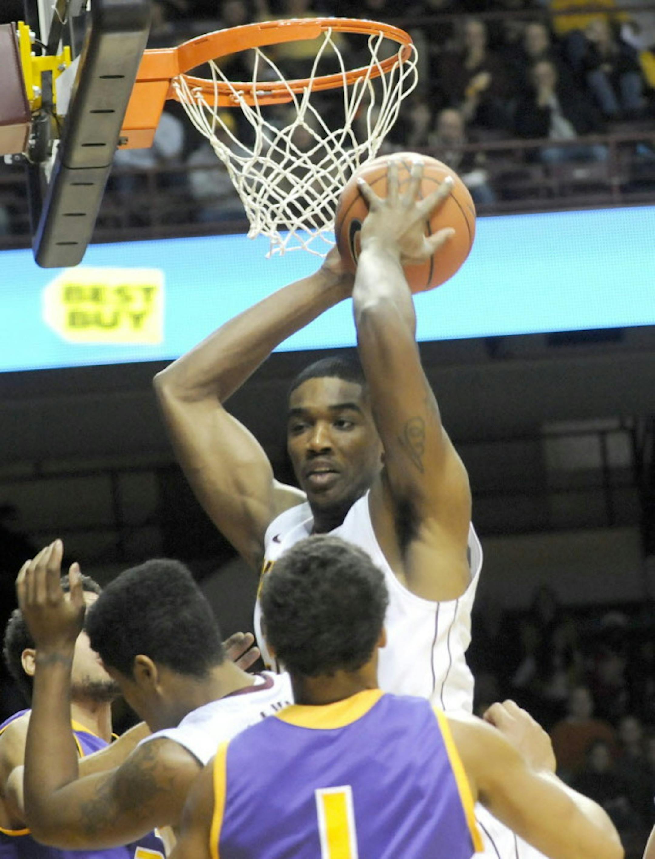 1) Andre Ingram: In his senior season, the forward has, simply put, played HARD so far. There have been several occasions in which Rodney Williams/Trevor Mbakwe/ Elliott Eliason have gotten into foul trouble, and Ingram has aptly stepped in to take charges, grab his rebounds and bang around under the basket. He did it impressively in the win over Memphis, keeping the Gophers' momentum with Williams and Mbakwe on the bench. It's a far cry from a year ago, when he looked timid and lost a lot of times. Nothing he's doing is flashy, but he's played a key role for the team so far.