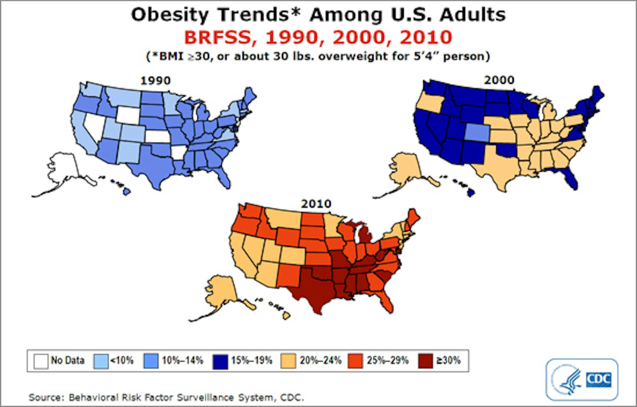 In 2012, about 34.9% of the people in this country were obese, which is roughly 35 pounds over a healthy weight. That is not significantly different from the 35.7% who were obese in 2010.