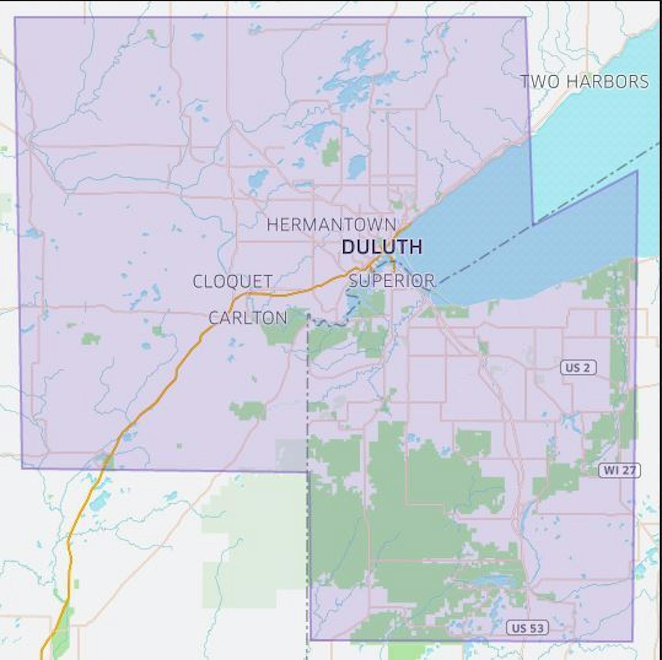 The Duluth service also includes Hermantown, Cloquet, Carlton, Superior, Wis., and surrounding communities.