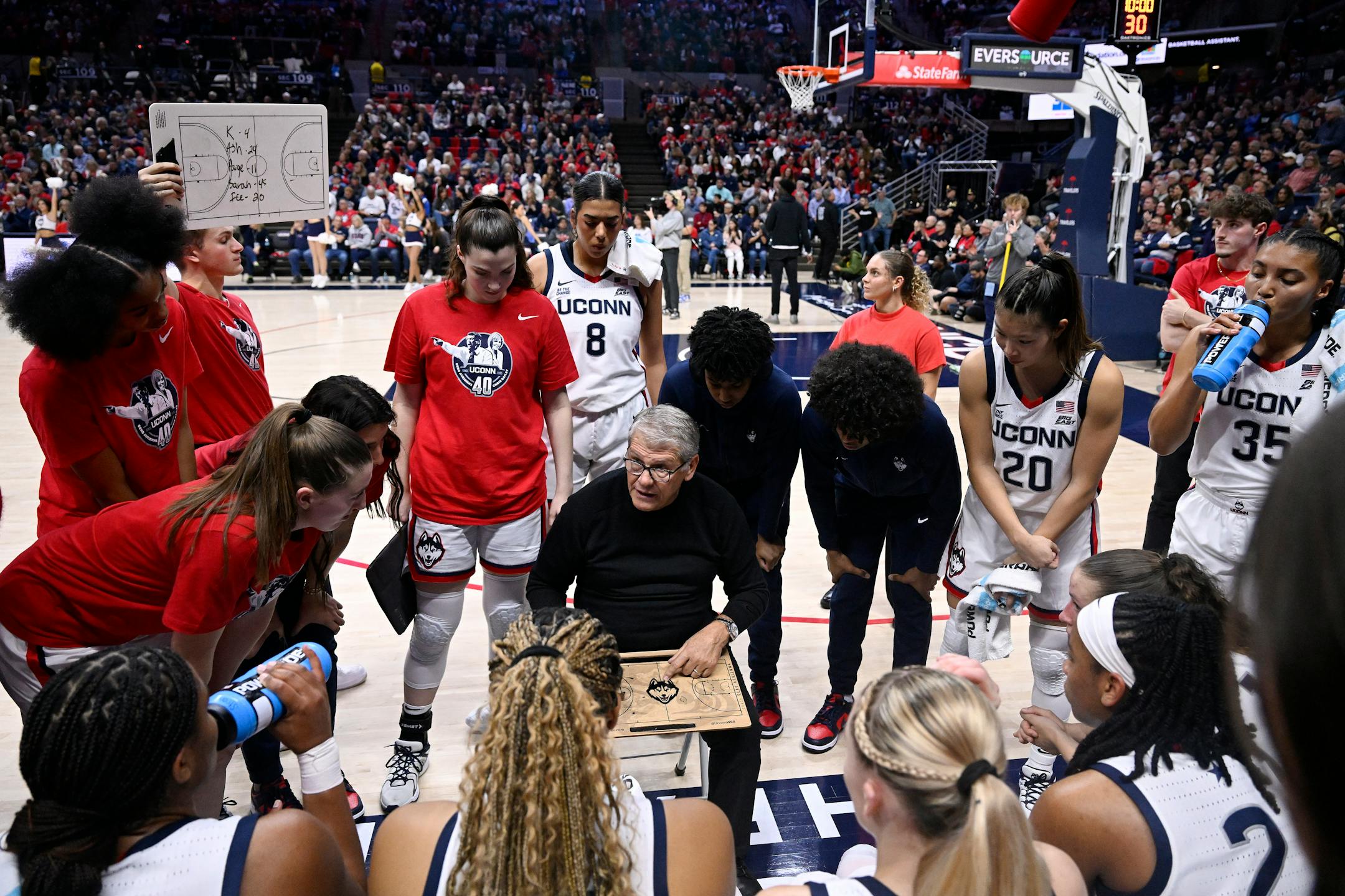 Surrounded by the greatest players in UConn history, including Diana Taurasi, Sue Bird, Maya Moore and Rebecca Lobo, Auriemma and longtime assistant Chris Dailey took in the incredible achievement in a postgame ceremony.
