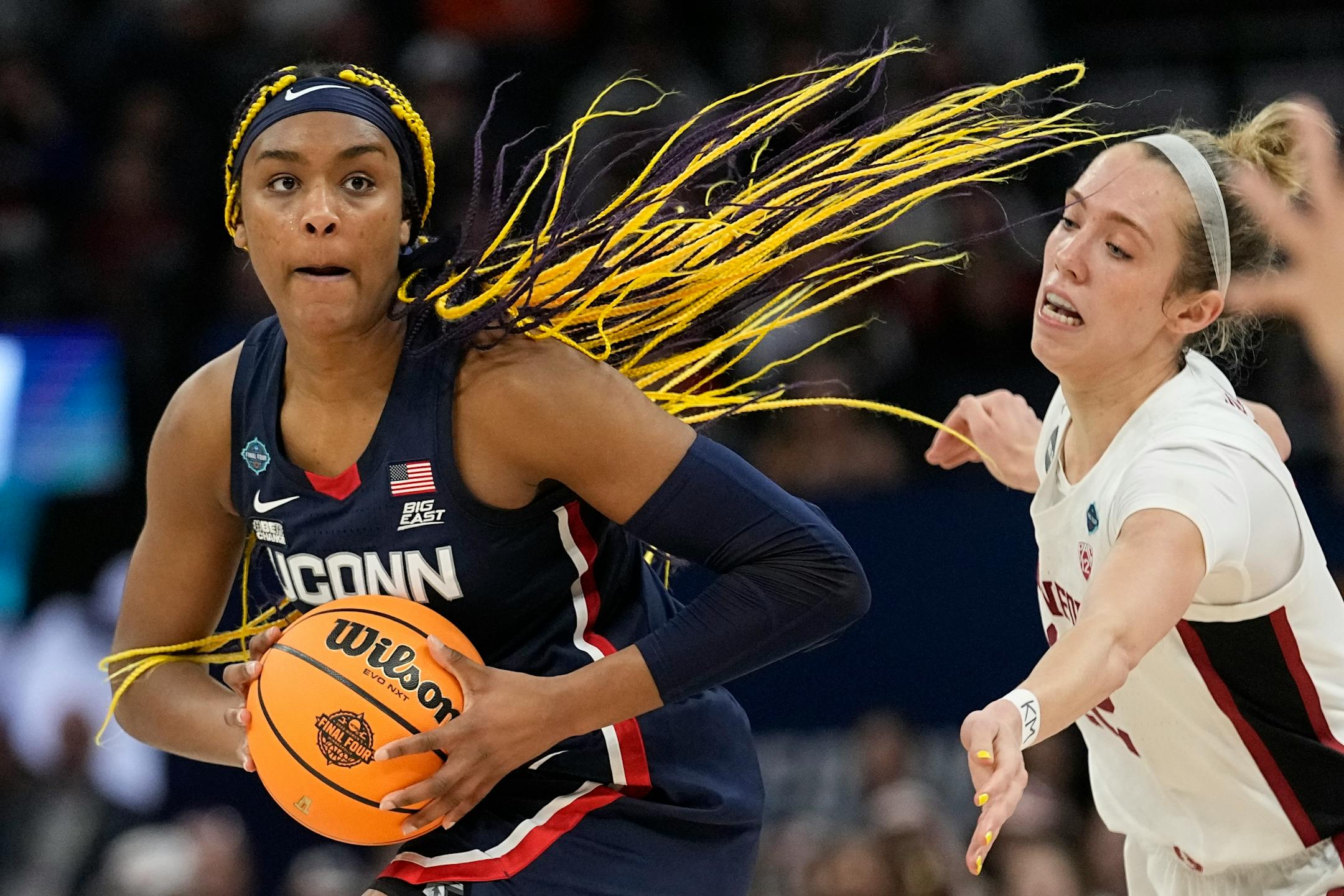 Connecticut sophomore guard and women's Final Four hometown star Paige Bueckers did what she does in her team's tense 63-58 national semifinal victory over defending champion Stanford on Friday night at Target Center.