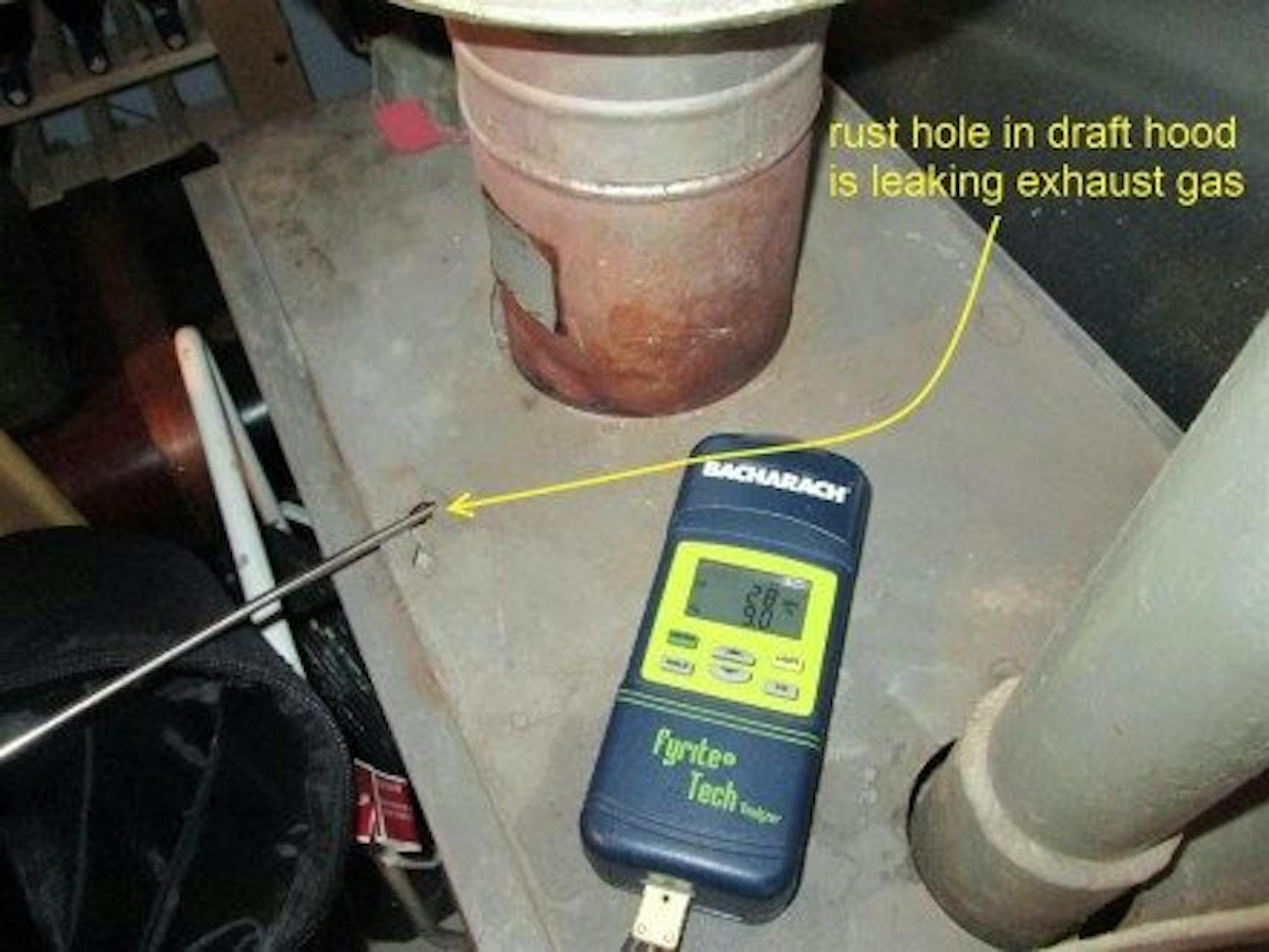 This has happened to me dozens of times, so I have to assume it happens to other home inspectors around the country every day. I report a problem with a gas appliance, saying there is exhaust gas leaking in to the house, and I say it needs to be fixed because it's a safety hazard; exhaust gas contains carbon monoxide.