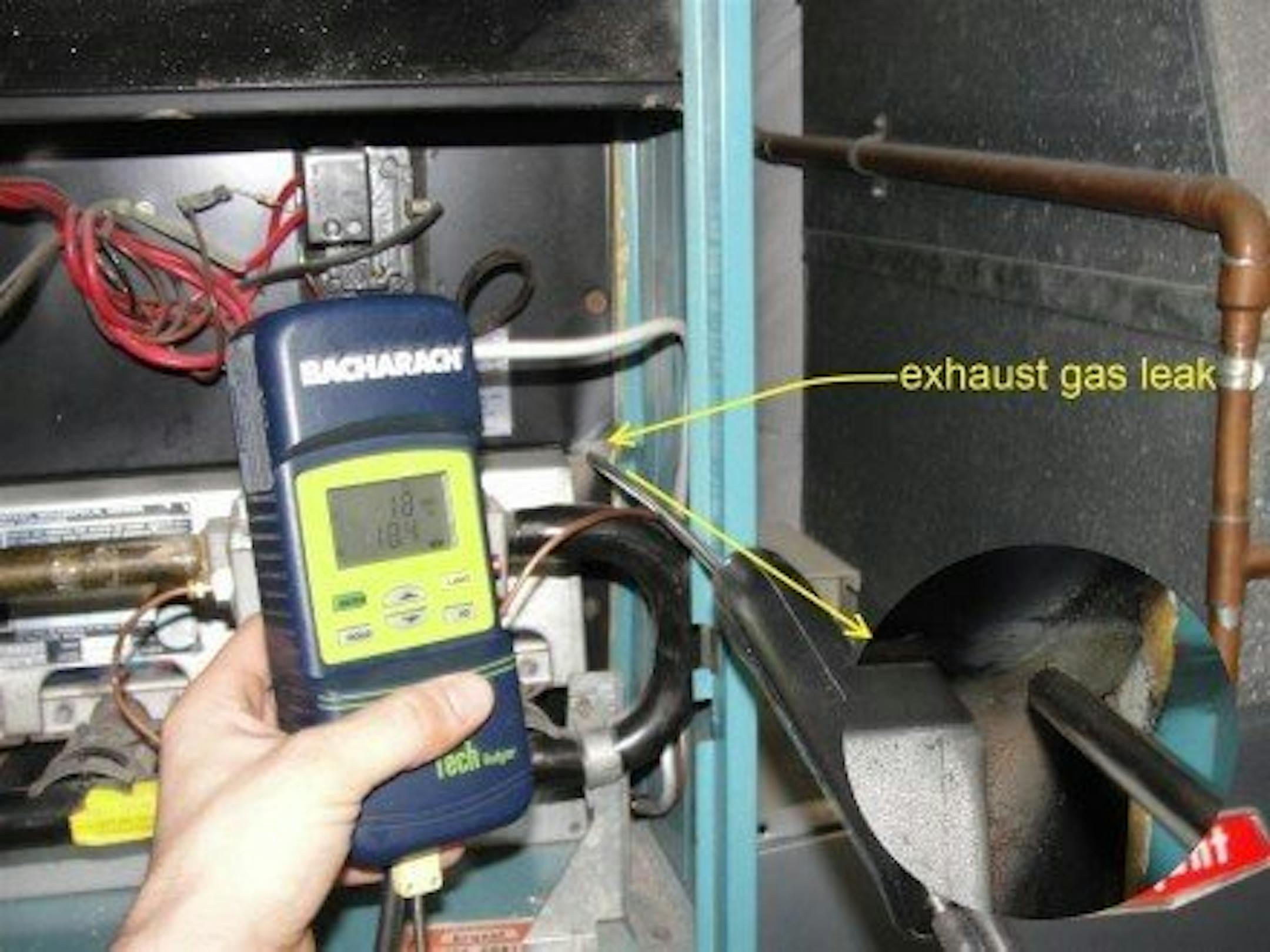 How do you know if your equipment is leaking exhaust gas? The best way to know is to have it professionally checked. A combustion analyzer can easily locate exhaust gas leaks. Most of the exhaust gas leaks that I find seem to happen at the same locations over and over.