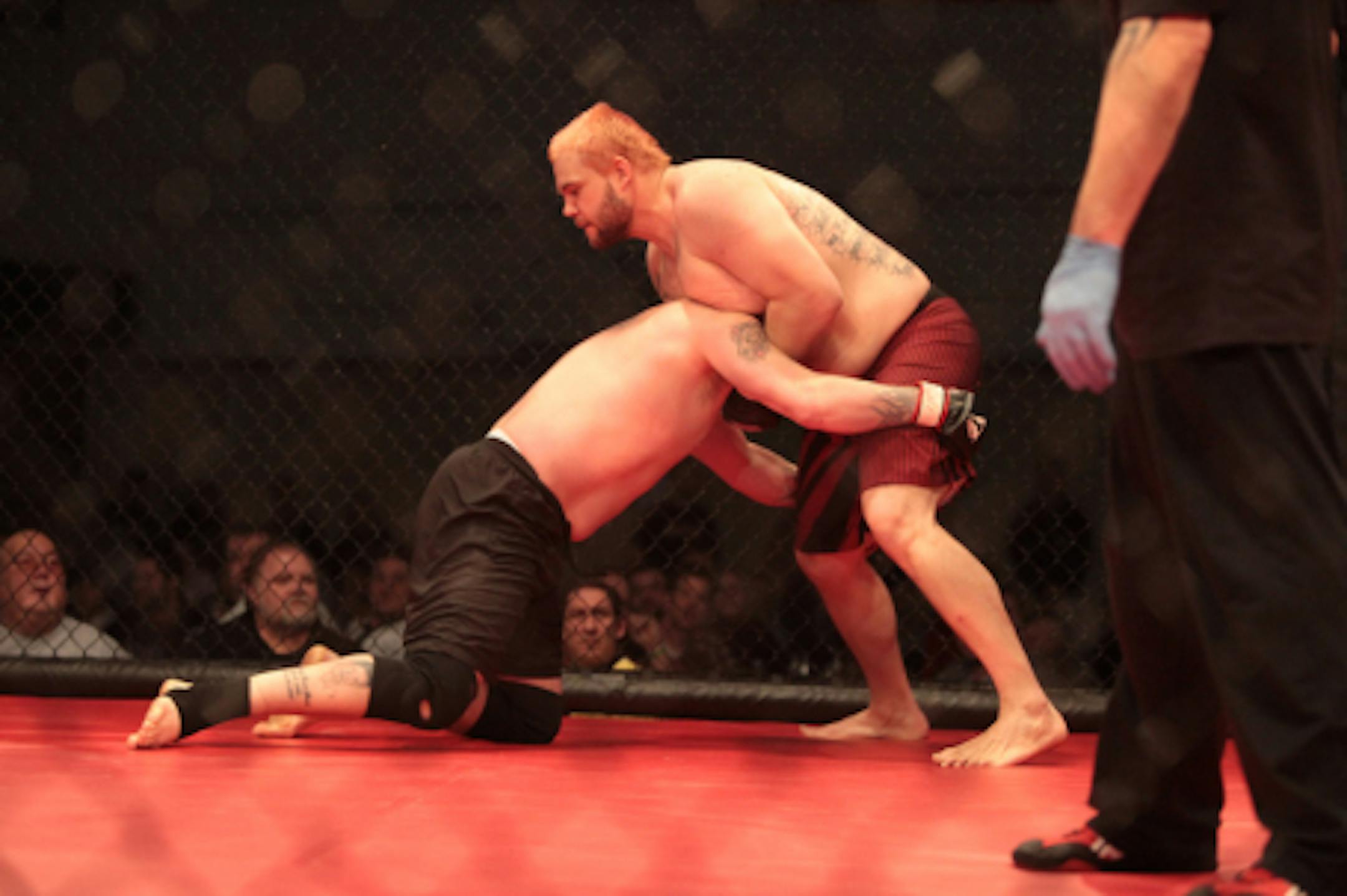 Also, Burnsville's "Suga" Shane Dezee (12-9) overcame a 110 pound weight difference to beat Chris Clark (7-25) from Fort Dodge Iowa by tapout to a side choke in 1:14 of round one.