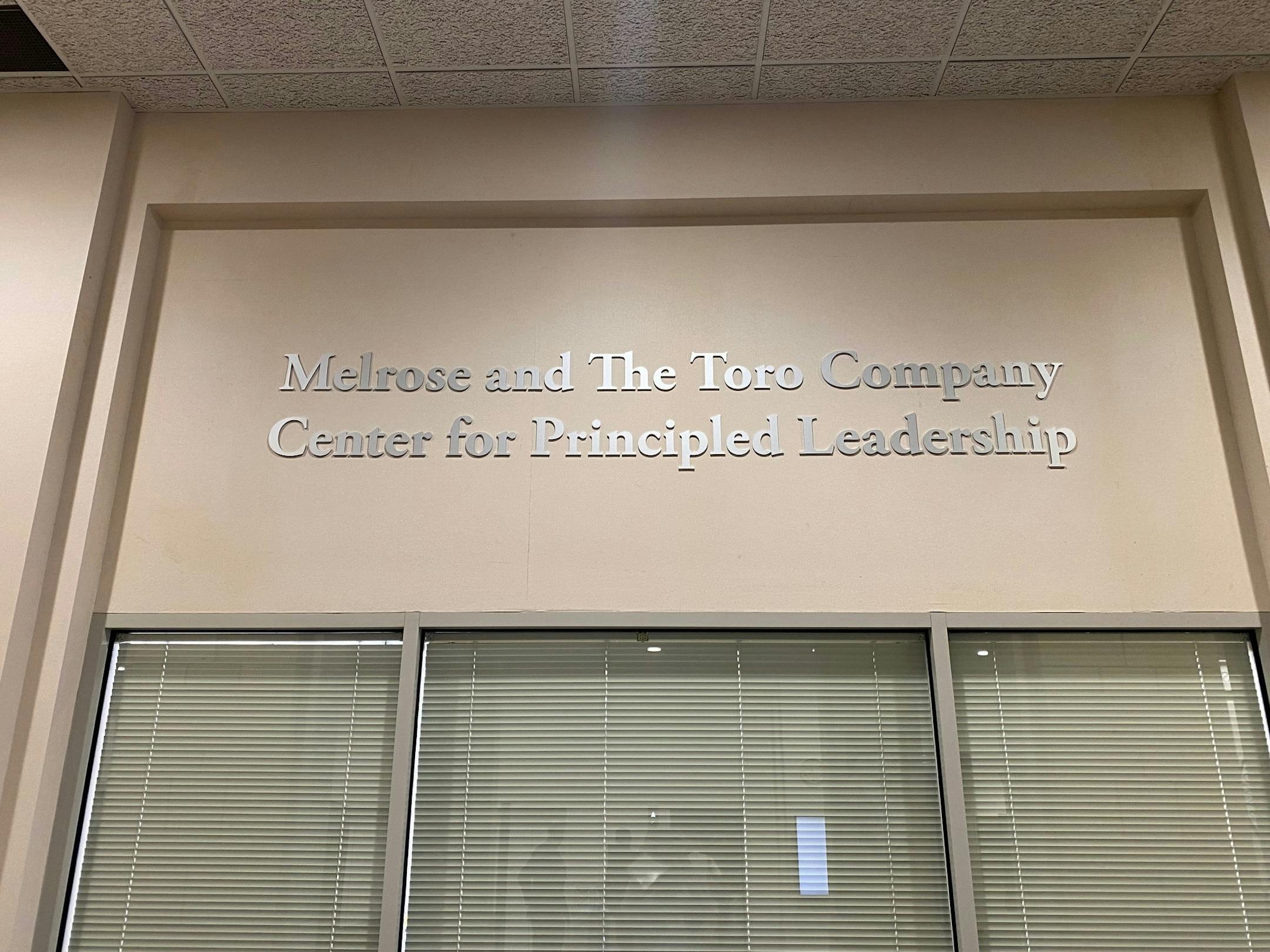 St. Thomas held a dedication on Monday for the Melrose and the Toro Company Center for Principled Leadership at the university's Minneapolis campus. The event was delayed for a year because of the coronavirus pandemic. The center led by Michaelson and Executive Director Nicole Zwieg Daly already has held events.