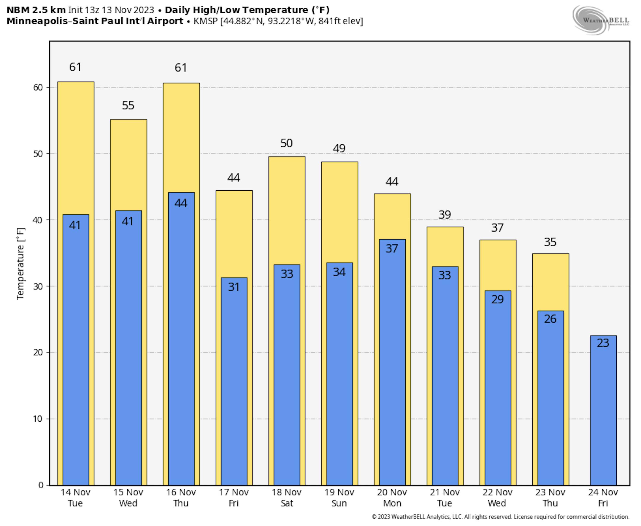 ECWMF Extended Snowfall Outlook (WeatherBell/The Minnesota Star Tribune)