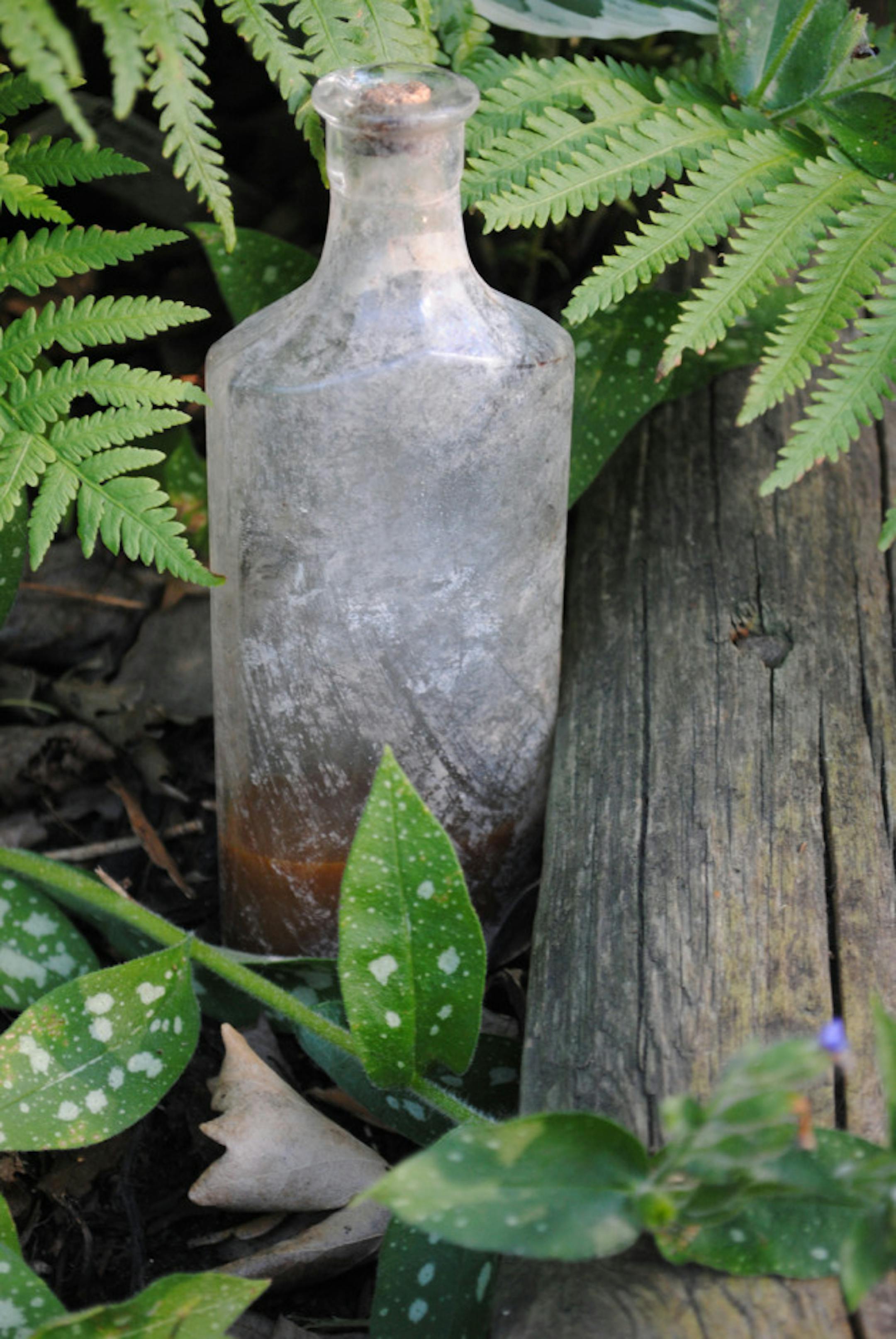Considering how little care I was taking with the roots of the expansionist ferns, I'm lucky I didn't break the bottle. It contains a bit of murky looking liquid that probably seeped by the cork, so it's not exactly mantel-display ready, but it was still kind of cool to turn up something that relates to someone else's roots while digging out fern roots.