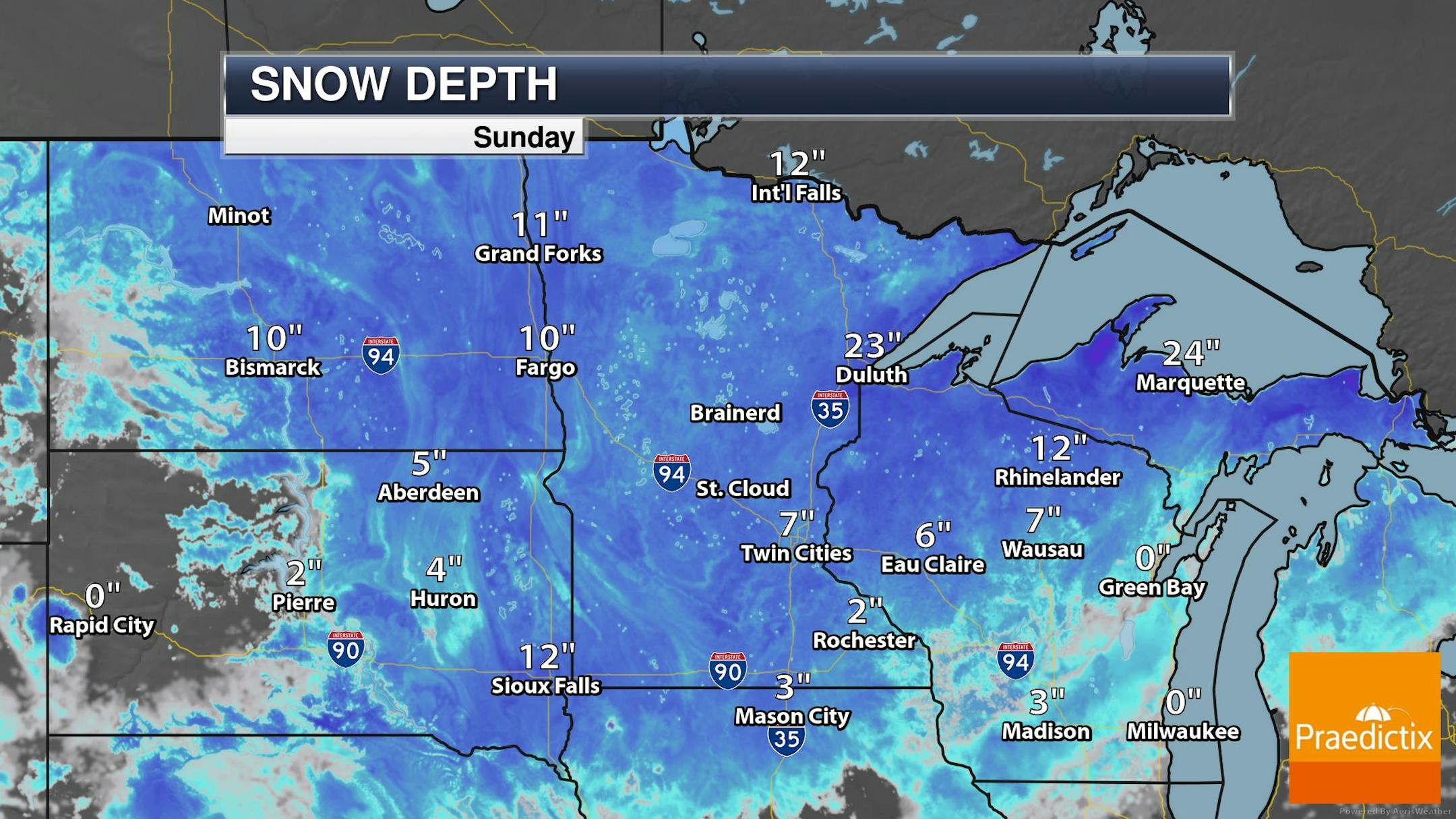 As of Sunday, February 12th, the MSP Airport still had 7" of snow on the ground. Meanwhile, there's nearly 2ft of snow on the ground in Duluth, across northern Wisconsin and the UP of Michigan. With several days of warmer weather on the horizon, our snow pack will take a bit of a hit, so get out there and enjoy while it's still around.