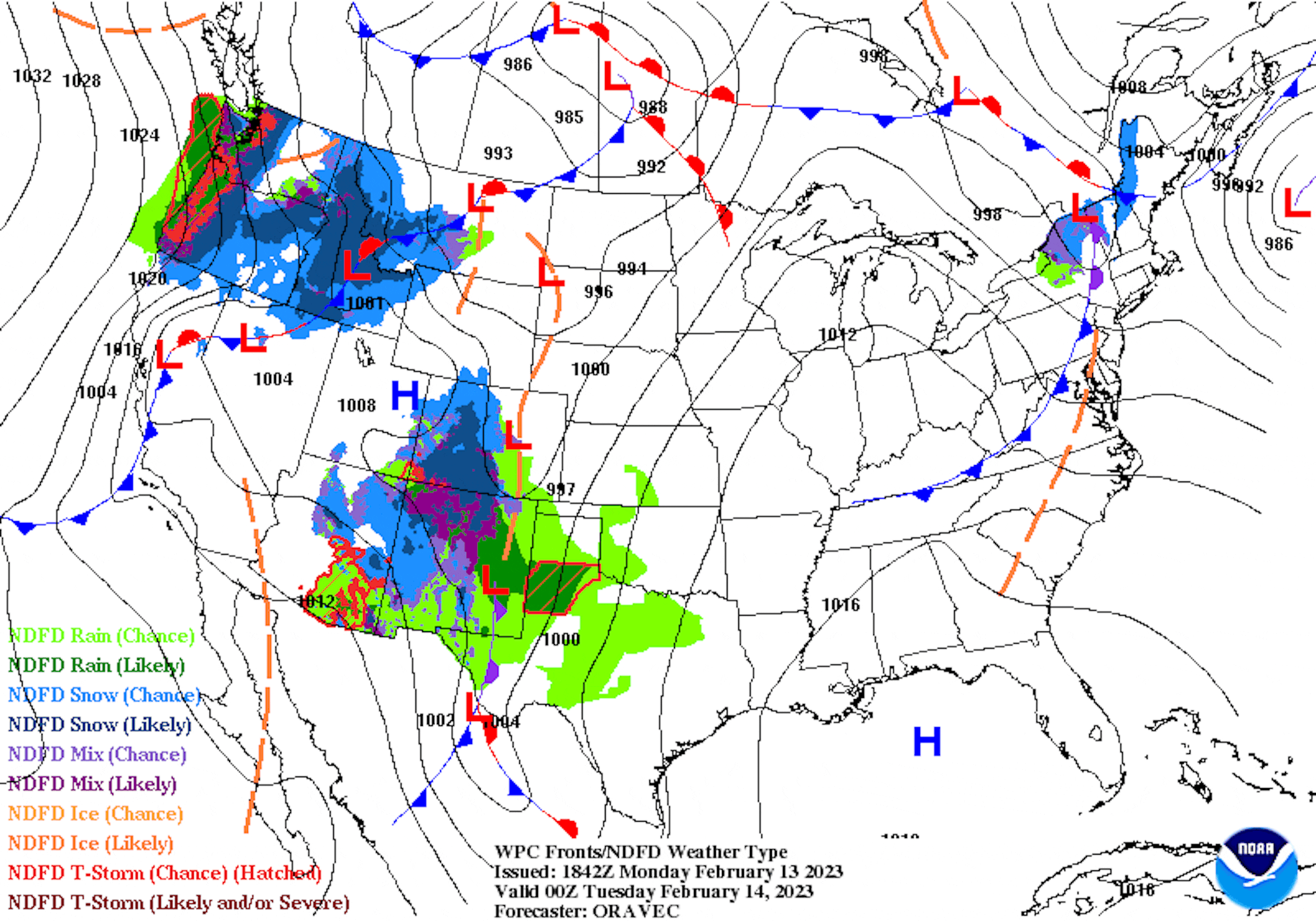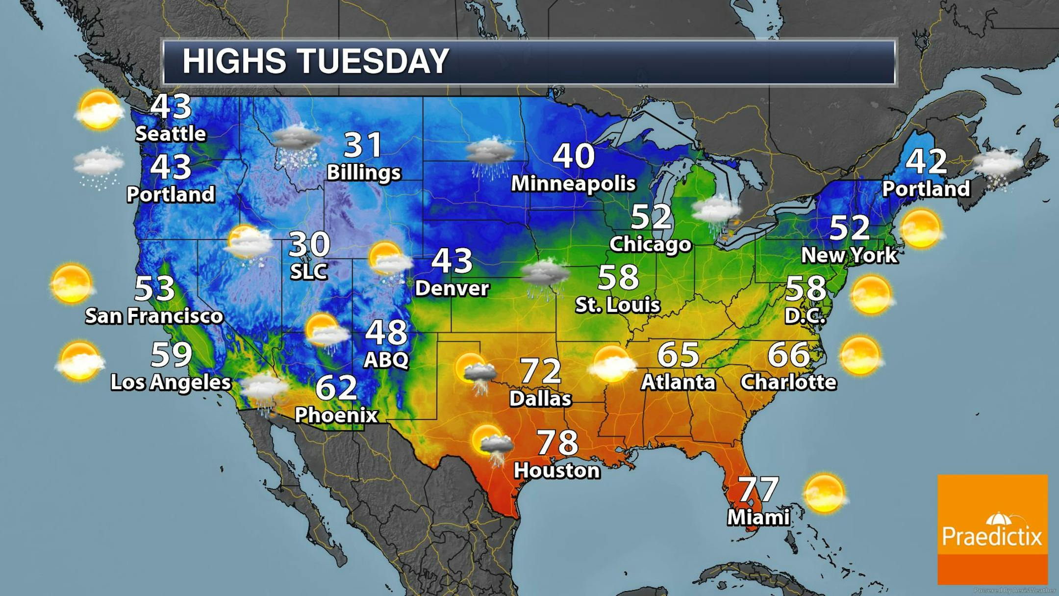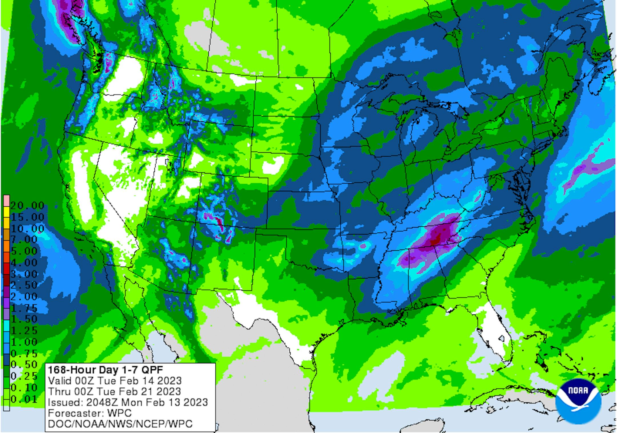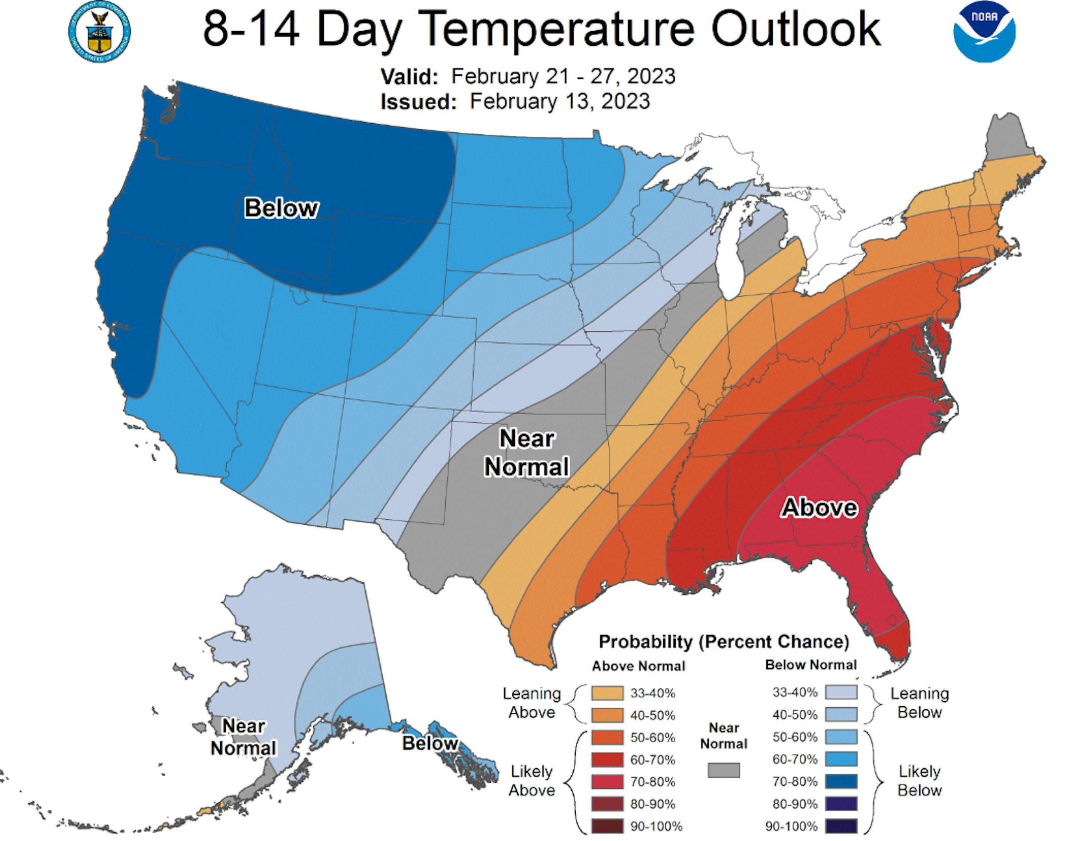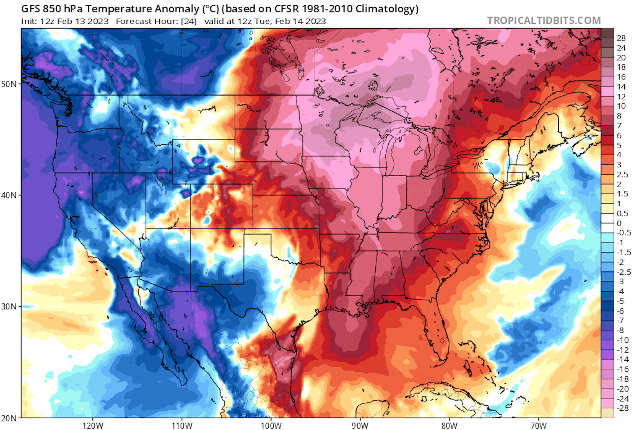 Mild February temperatures look to continue across much of the eastern two-thirds of the nation through at least midweek. A bigger storm system will develop in the Central US midweek with cooler air funneling in later this week. The good news is that this cooler air won't be too terribly cold and it certainly won't be as cold as it was a couple of weeks ago.
