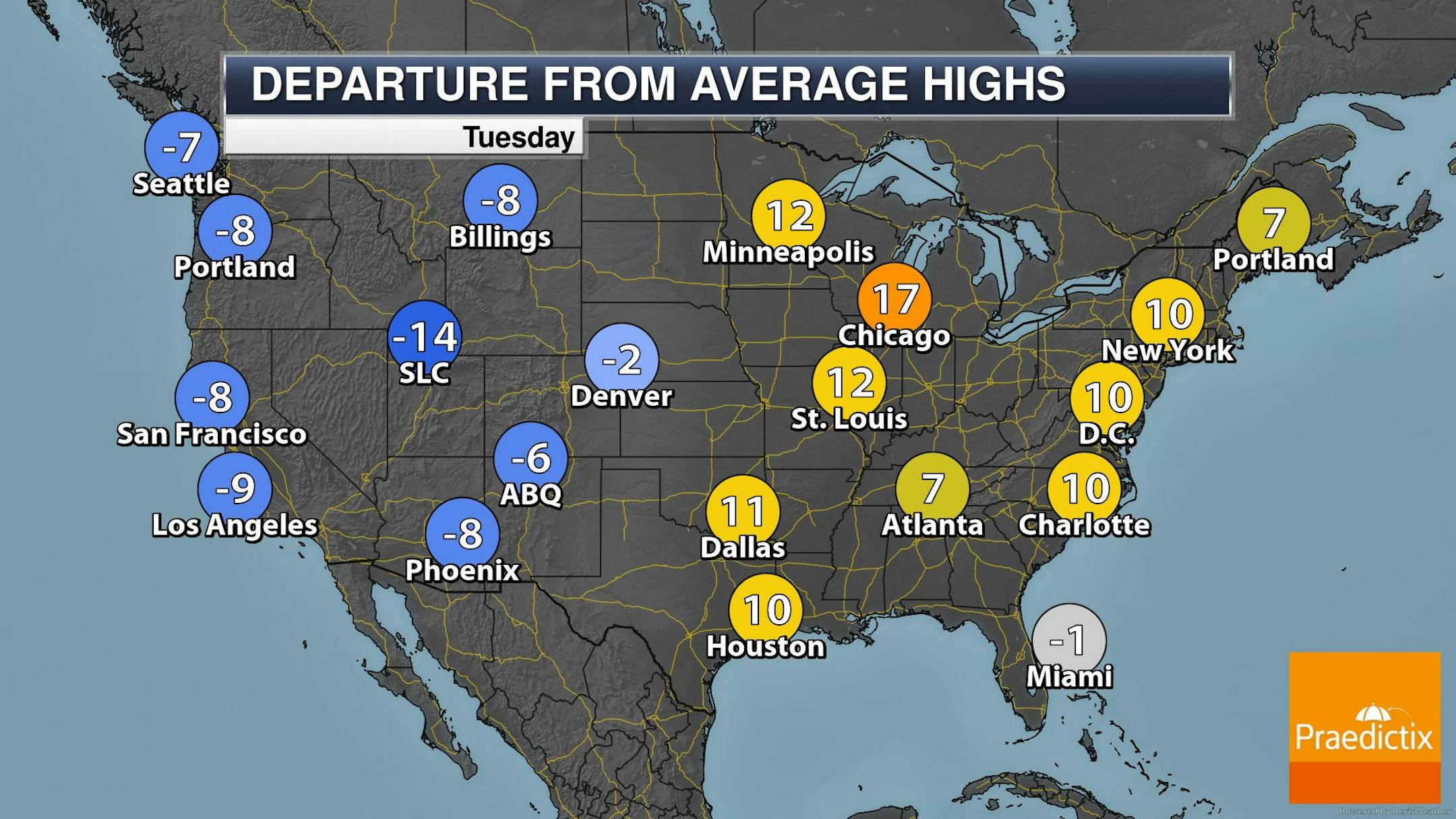 Warmer Temps Continue. Brief Cooldown Late Week.