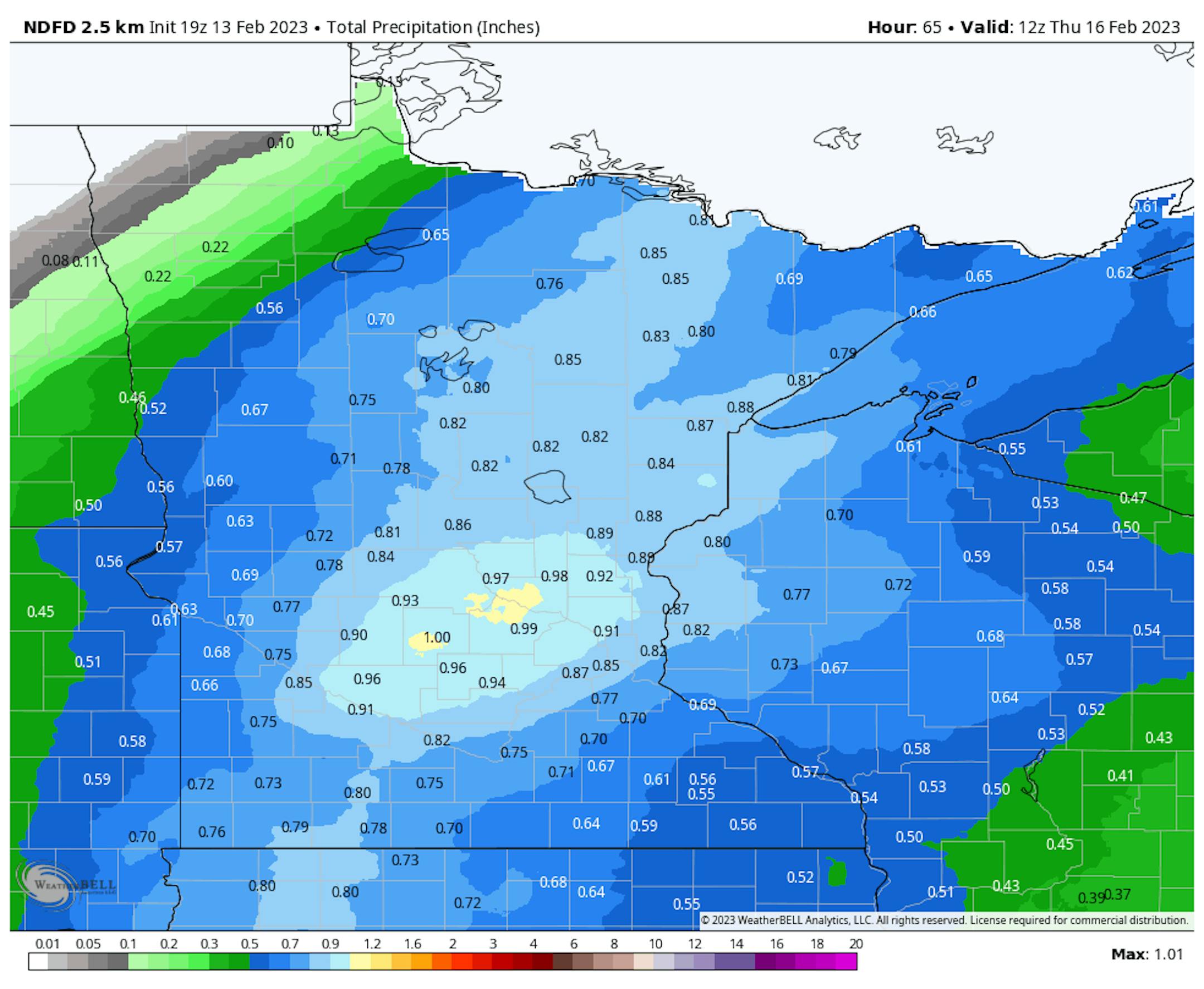 This will be a waterlogged storm with total liquid amounts approaching 1" or more across parts of Central MN.