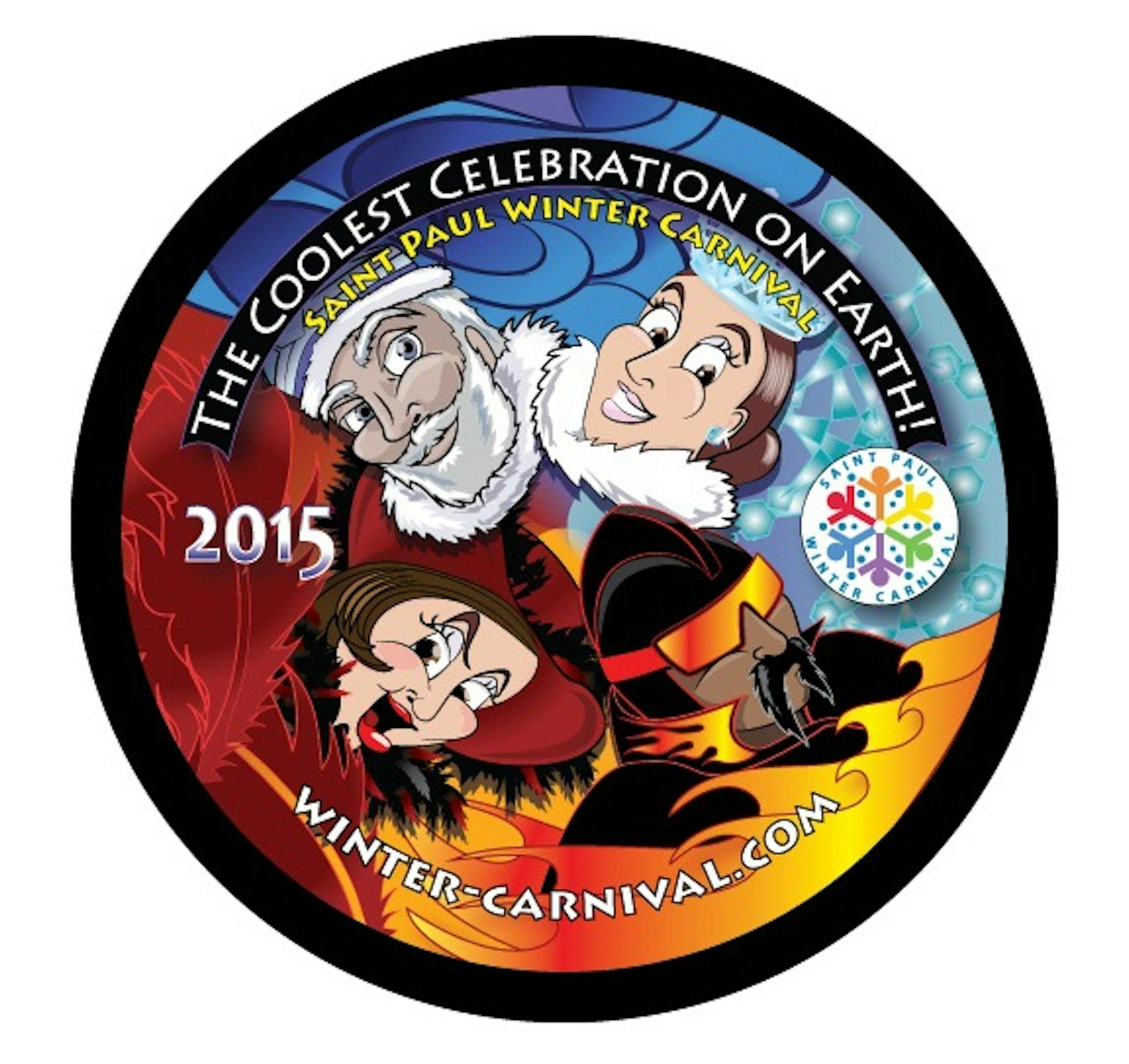 This year's buttons include one fan favorite of the carnival's legendary cast, depicting King Boreas, Aurora Queen of the Snows, Vulcanus Rex and Klondike Kate. The other three designs showcase snowman building, sledding and the St. Paul skyline.