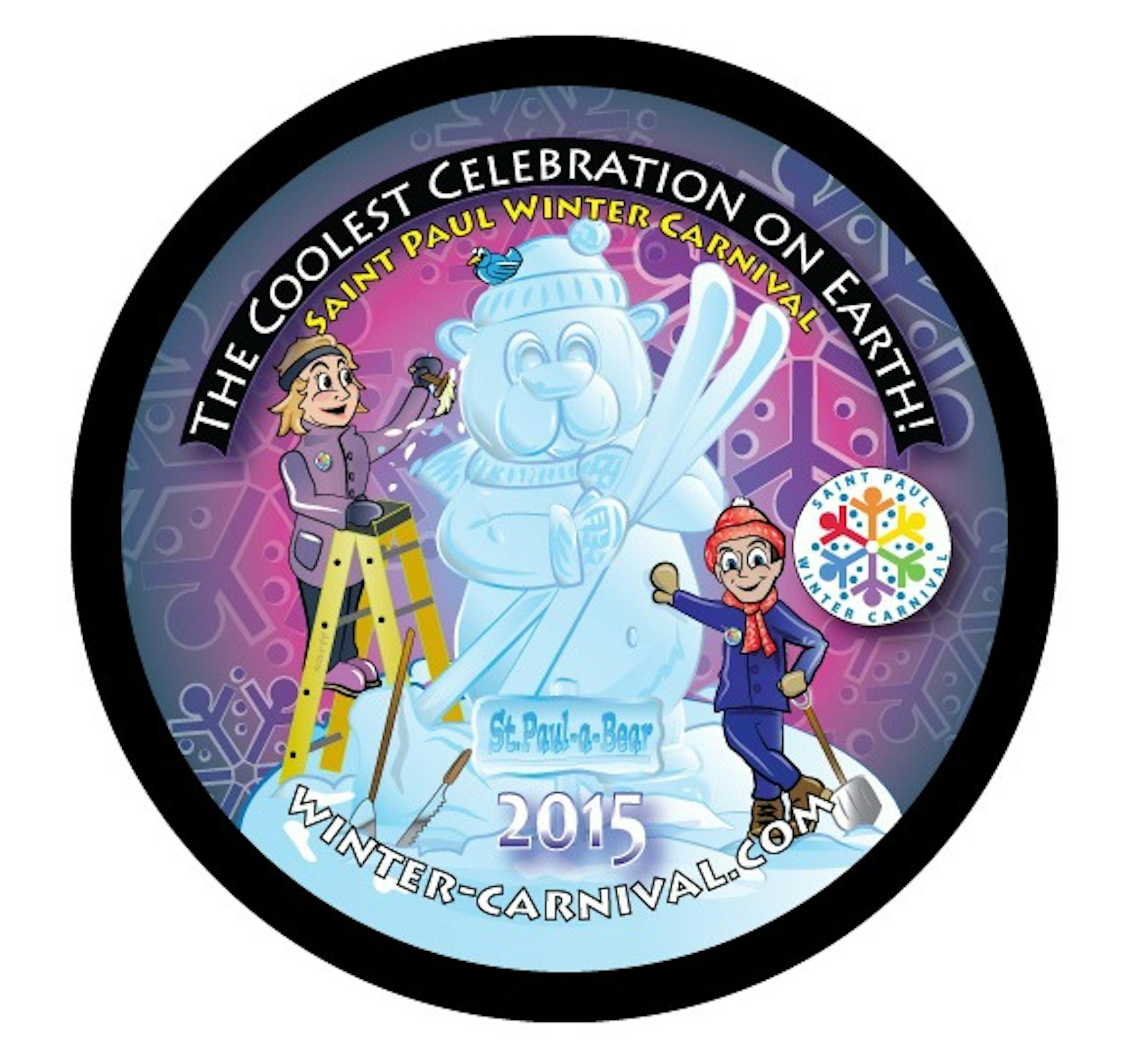 Chad Peterson, a local freelance artist and longtime Winter Carnival Ice Carving Contest competitor, designed the buttons for the third year in a row. Peterson has won several ice carving competitions in the team and individual categories.
