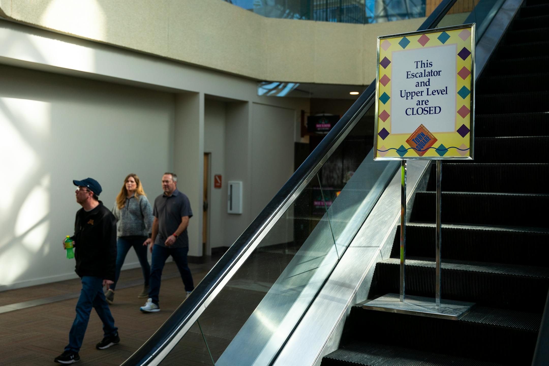 A wooden picket fence blocks the pair of motionless escalators leading up from the skyway level to a third floor — once a beloved spot for work breaks. For two decades, the 26,000-square-foot atrium was an indoor city park, home to a trickling brook and waterfalls, more than 250 tropical plant species and a historic hand-carved carousel.