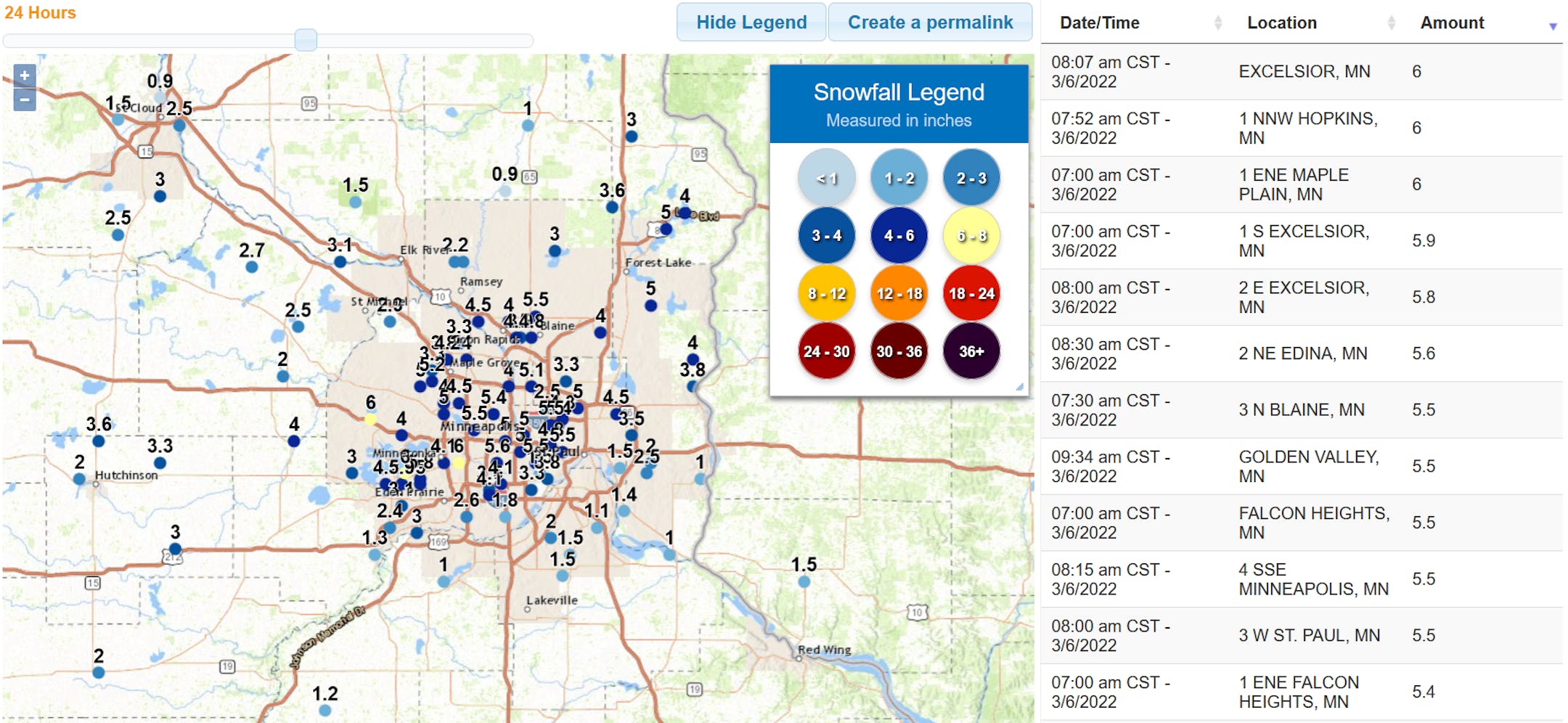 Meanwhile, some areas of the west metro including Hopkins, Excelsior, and Maple Plain saw half a foot of new snowfall overnight! Of course, the snow and ice messed up the roads across the region Sunday morning.