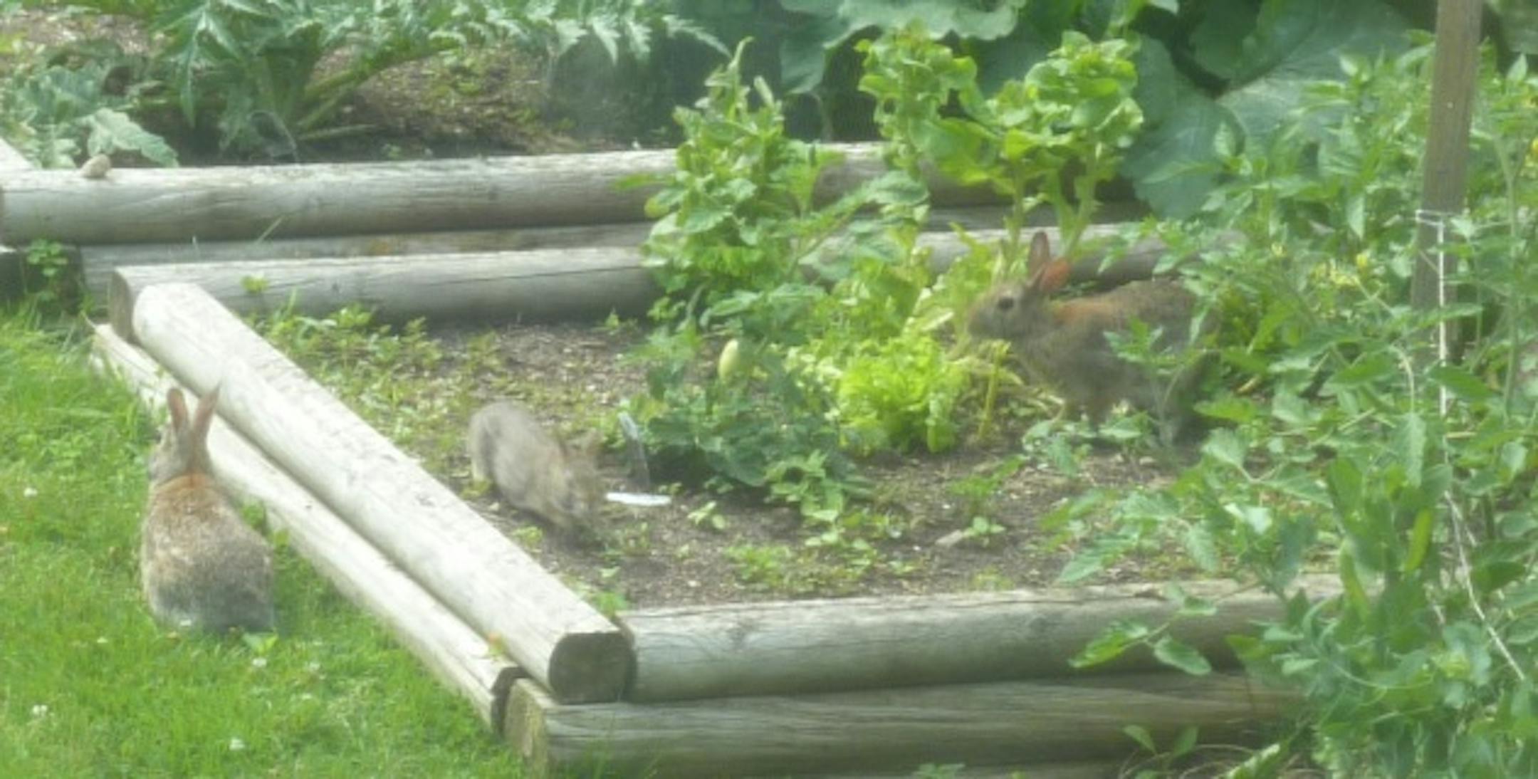 Sometimes it's not one, not two, but THREE bunnies nibbling at your bolted lettuce.