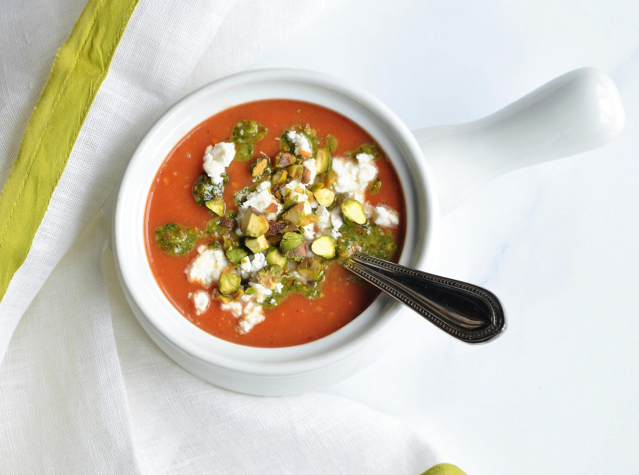 When the craving for tomato soup hits, it's time to step away from the can and step up your game with this recipe, which starts with roasted cherry tomatoes. "While no garnish is necessary to make this a satisfying meal, it pairs so well with all kinds of toppings, even those with complex flavors like pistachio-basil pesto, that it's hard to resist gilding the lily," writes Meredith Deeds in 2021. Grilled cheese optional but highly desirable. Find the recipe here.