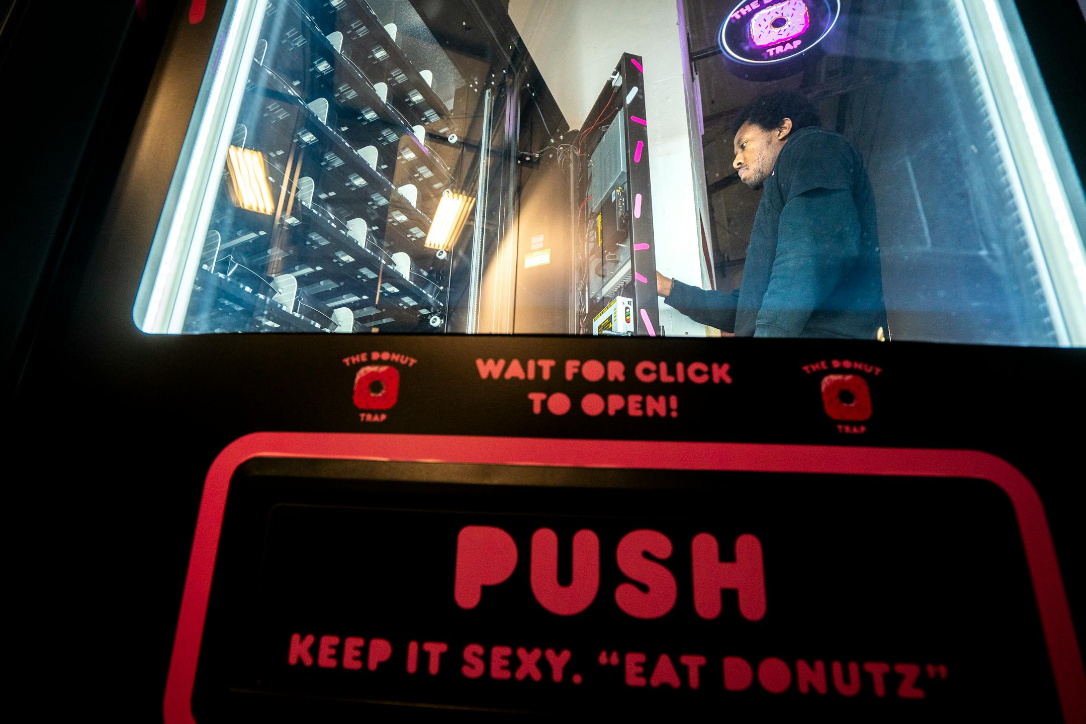 Bradley Taylor spent months brainstorming with different manufacturers on a vending machine design that would not only keep his homemade doughnuts fresh but dispense them gently enough to not smear the icing or smush the shape.