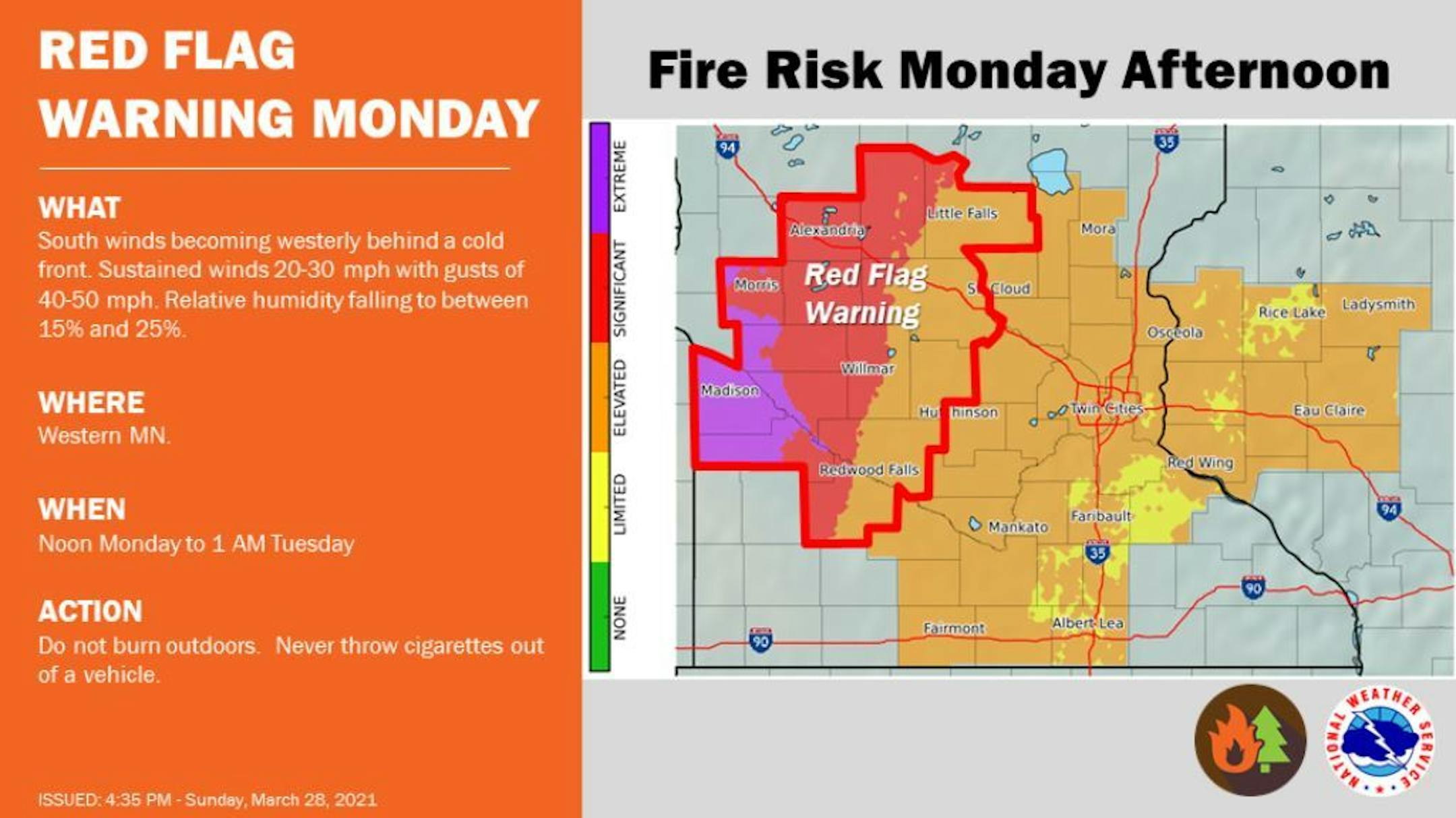 CRITICAL FIRE WEATHER CONDITIONS EXPECTED MONDAY AFTERNOON AND EVENING ACROSS WESTERN AND PORTIONS OF CENTRAL MINNESOTA.