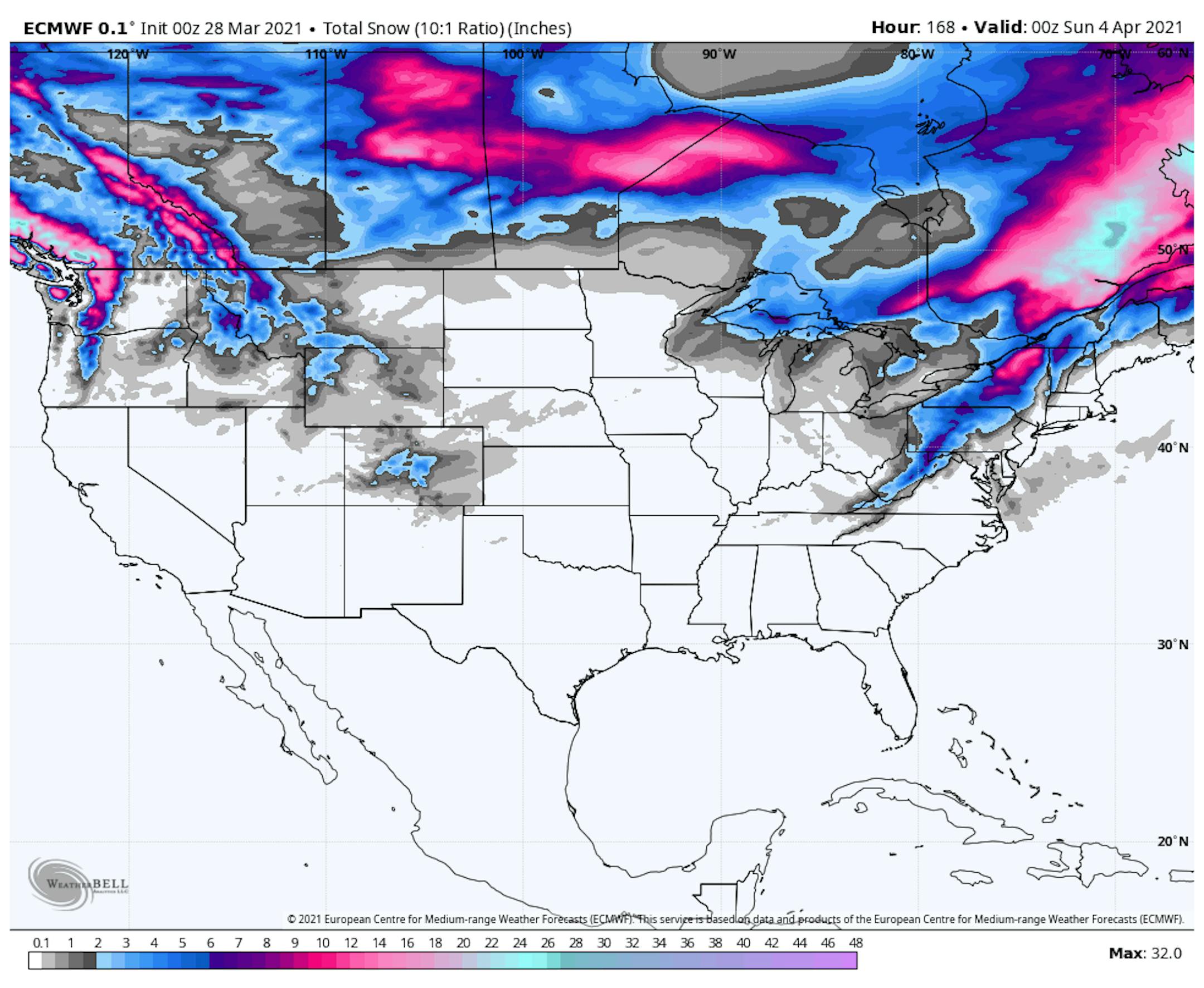 Here's the extended temperature and weather outlook over the next 5 to 7 days. Note that high temps on Monday could warm to 70F, which would be nearly +20F to +25F above average. Temps will actually feel a bit chilly midweek as high temps drop into the mid 30s by Wednesday, which will be nearly -10F to -15F below average. This will likely be our last chilly day for a while, note that temps will warm quickly into the 50s and 60s later in the week! Highs next weekend could be in the mid 60s, which will be more typical of late April. Despite a few rain showers along the cold front Monday night, the next 5 to 7 days appears to be quite dry.