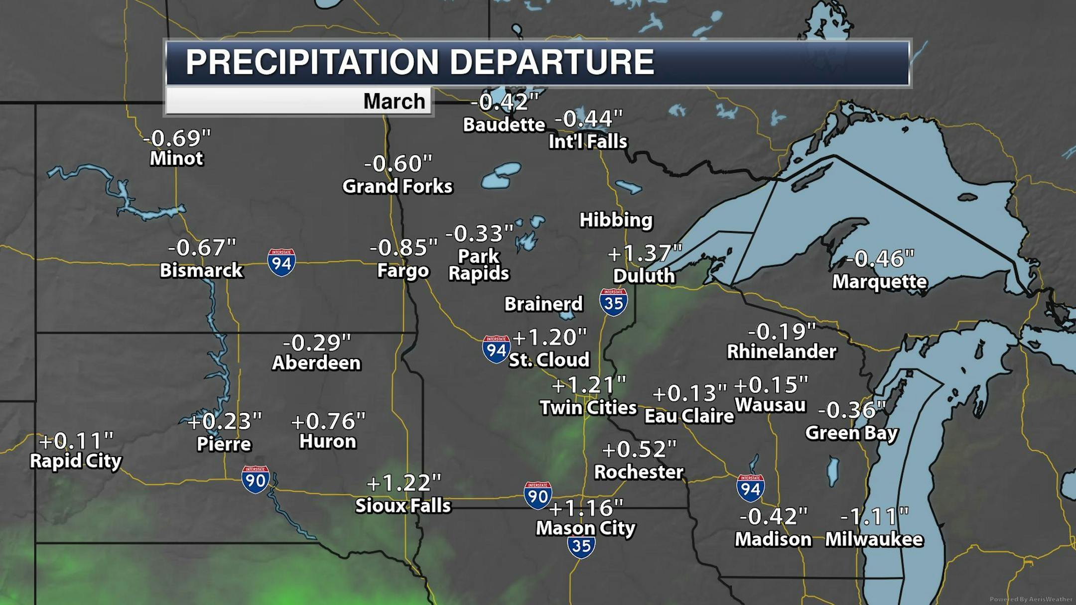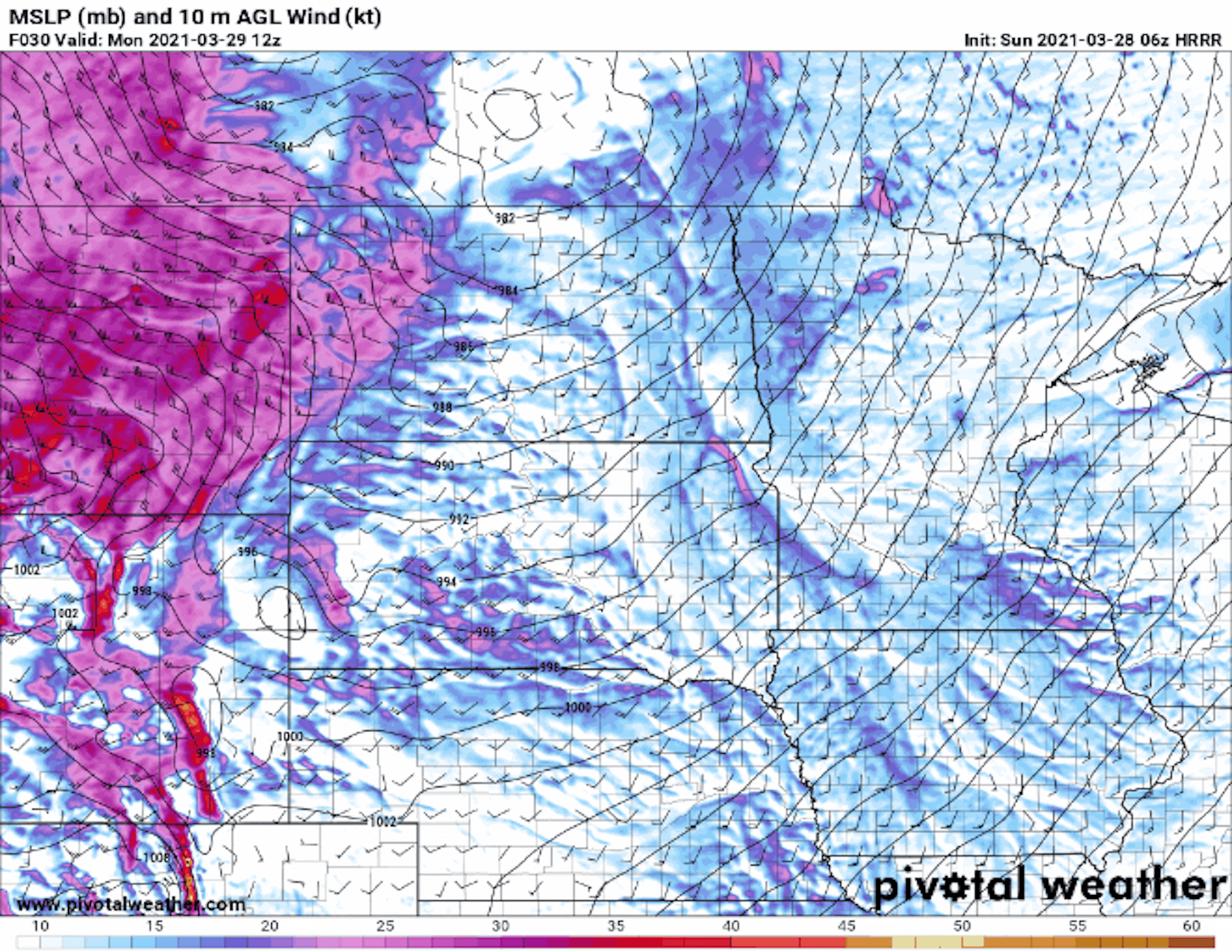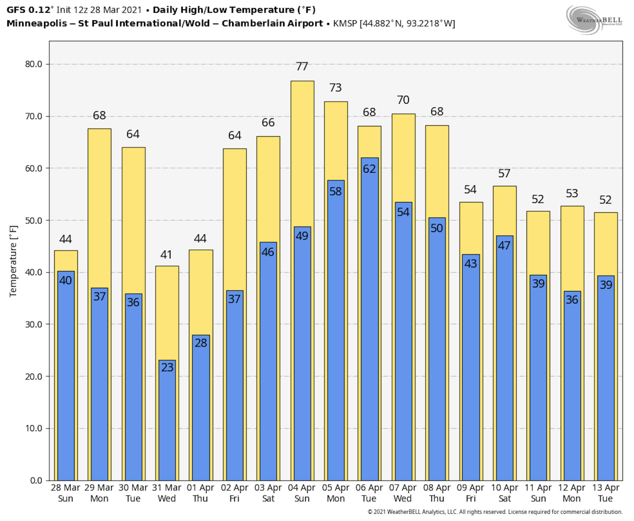 High temps will be VERY warm for late March, but it will come at a price. Strong winds are expected to blow through the region much of the day with peak wind gusts approaching 40mph, including the Twin Cities.