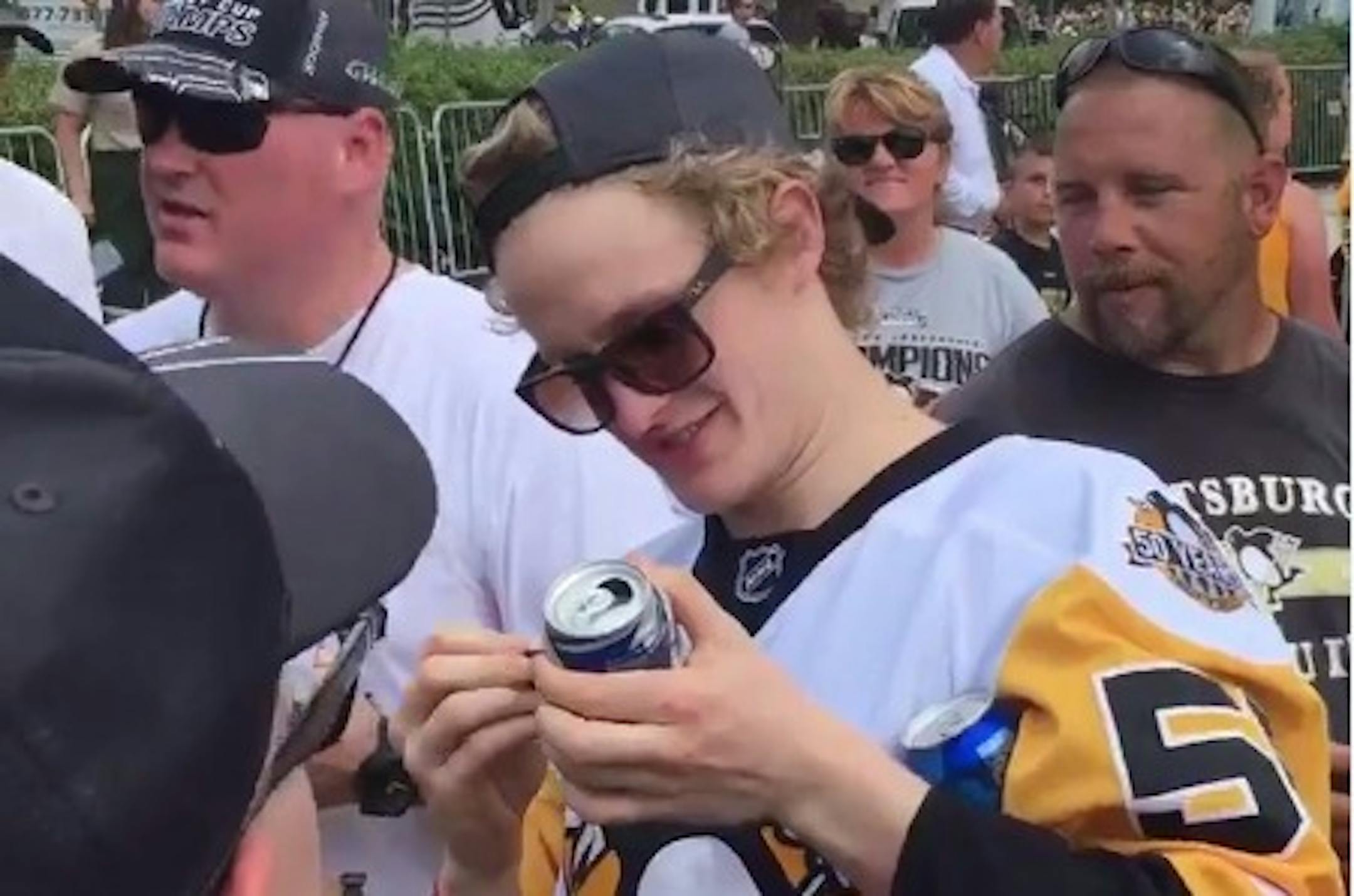 Already a rising star thanks to his remarkable postseason scoring run with the Stanley Cup champion Penguins, the rookie pulled a veteran move during Wednesday's boozy victory parade.