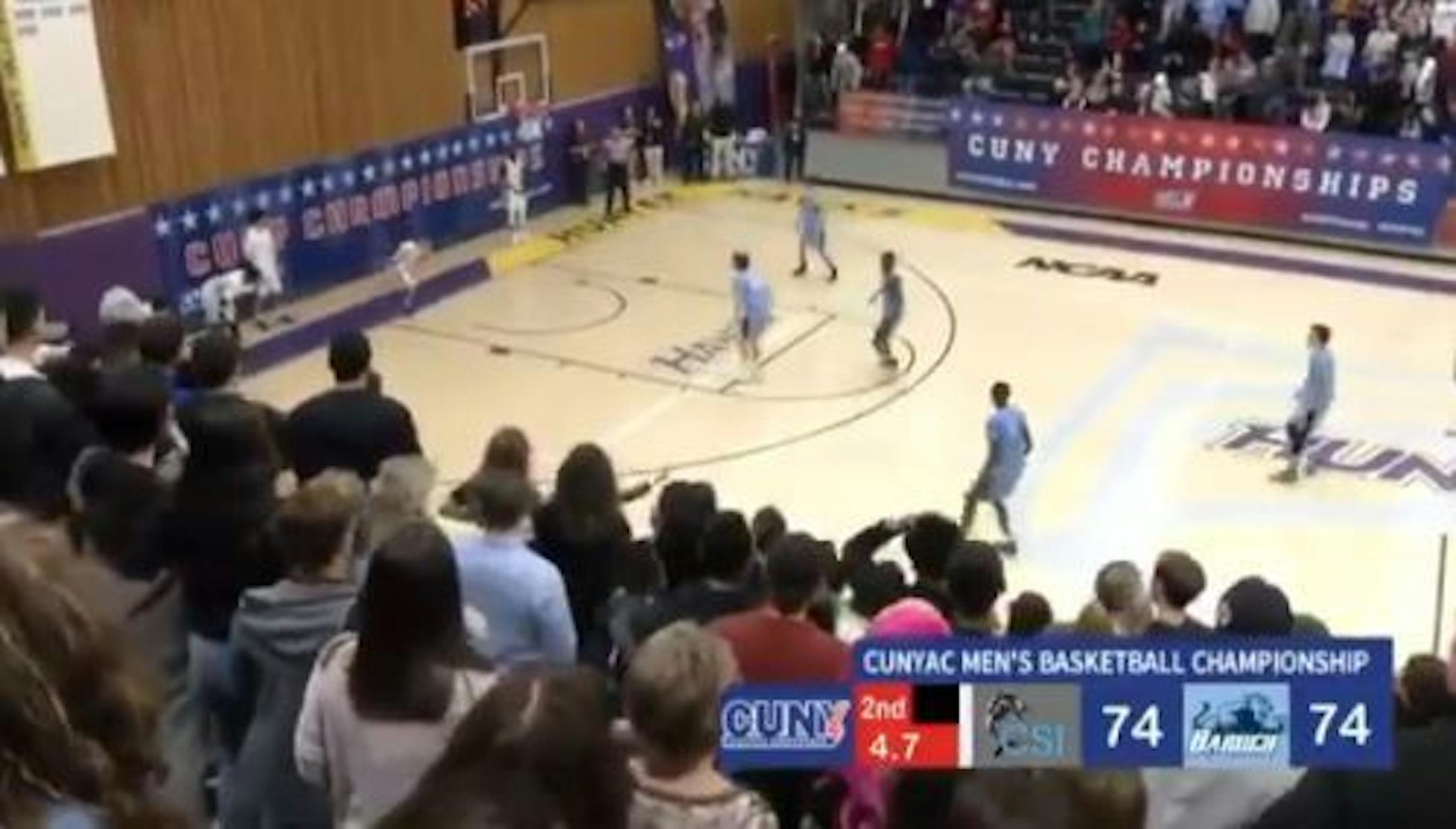In a tie game with 4.7 seconds left, the City University of New York Athletic Conference men's basketball championship game hung in the balance Friday.