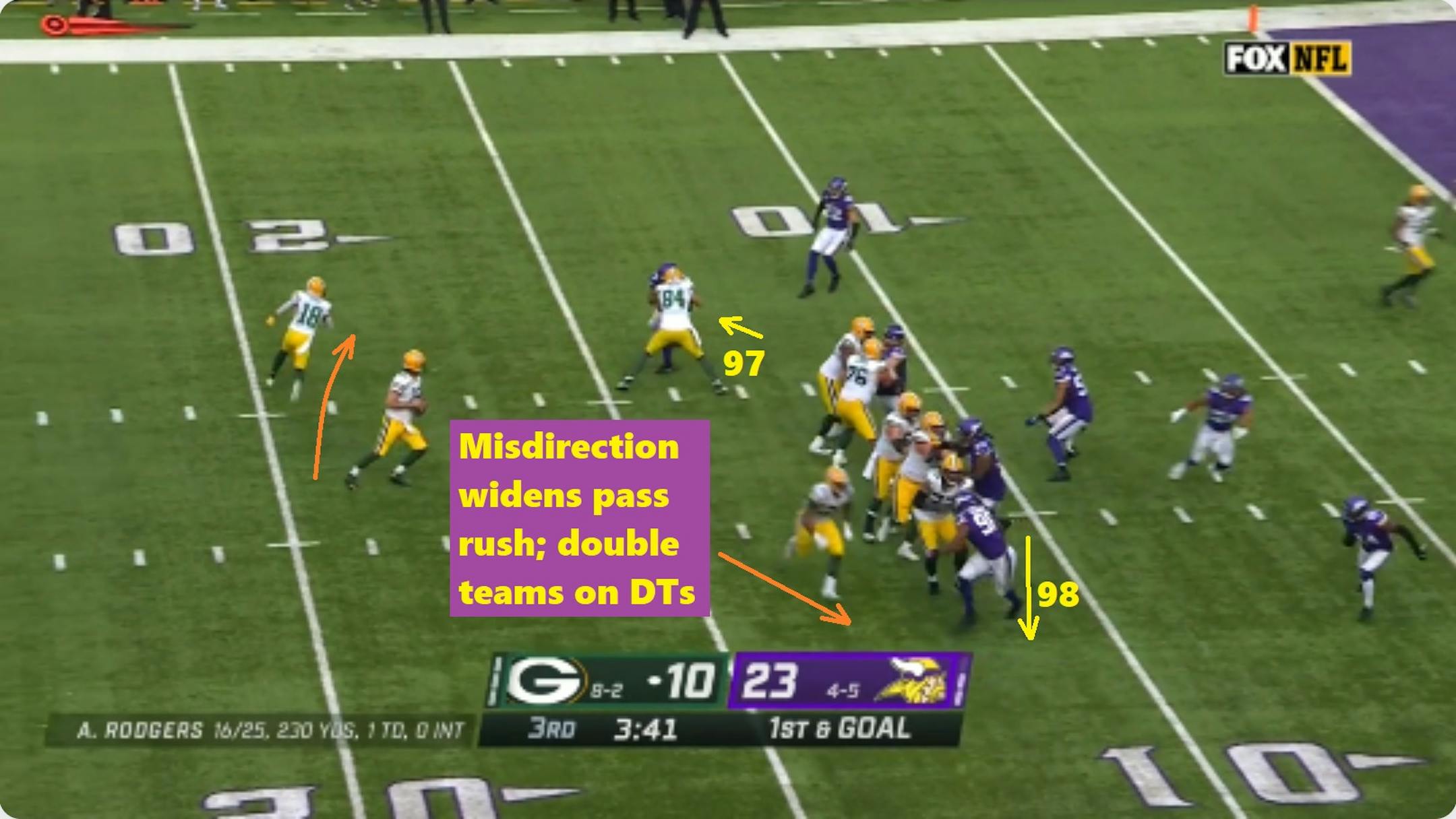 1. The Vikings defense was a step late with the Packers' misdirection, especially during Green Bay's initial touchdown drive in the third quarter. Aaron Rodgers had struggled to get the ball to Davante Adams during the first half, so they came out scheming some touches to him — and away from cornerback Patrick Peterson.