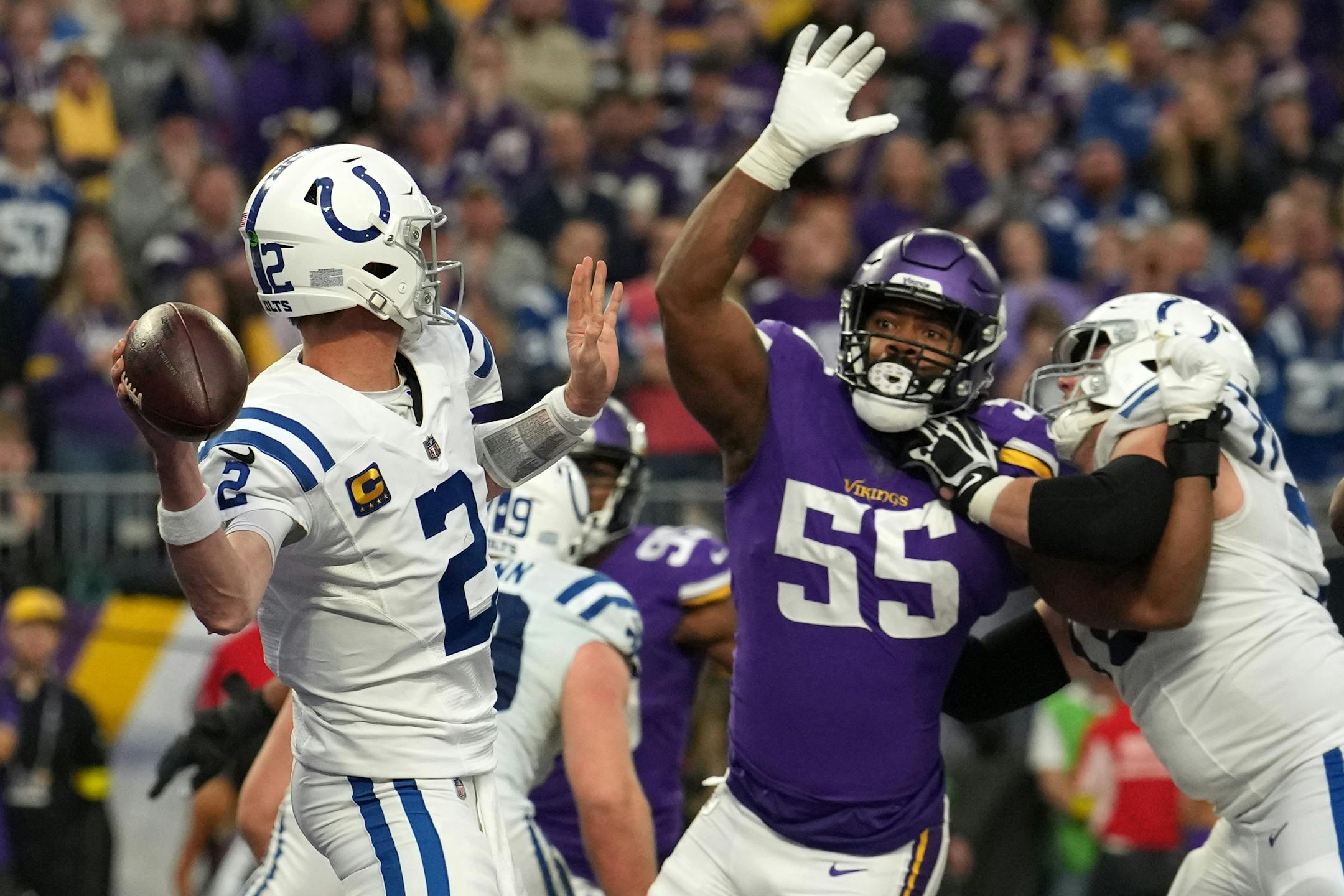 Donatell pointed to the Vikings shutting down deep throws as the biggest change following a franchise-worst streak of five consecutive 400-yard games allowed. The Colts attempted only three throws at least 20 yards downfield. All three fell incomplete, according to Pro Football Focus. Both players and coaches fared better, Donatell said.