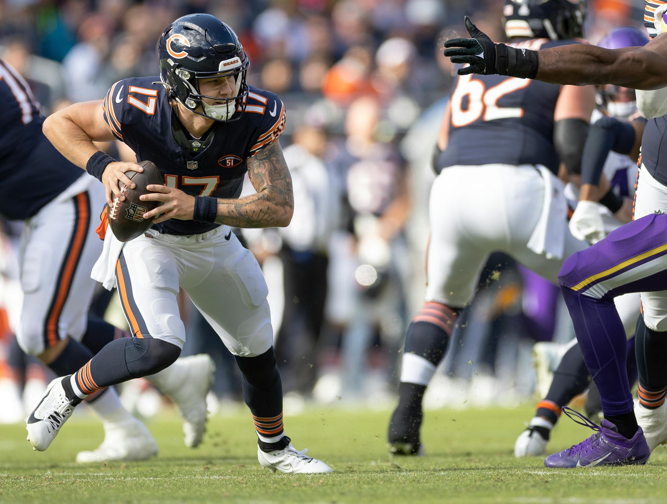 Sunday at Soldier Field, the Vikings almost lost to a team that had won one of its previous 15 games, and a backup quarterback, Tyson Bagent, who played at Shepherd University (we are not making this up), which lost in the Division II semifinals last year to the Colorado School of Mimes 44-13 while Bagent was credited with minus-48 yards rushing. (Fact check: It's the Colorado School of Mines. Not Mimes. That would have been weird.)