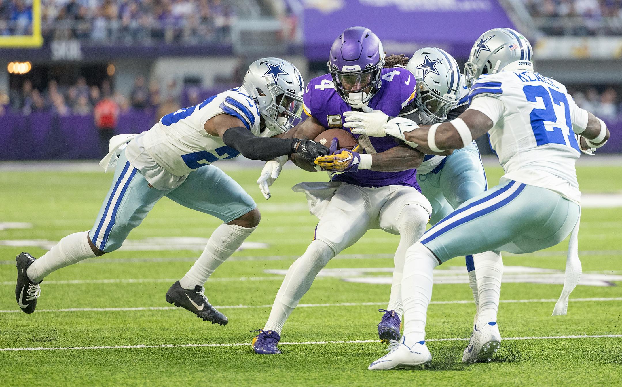 After handing off twice to Dalvin Cook on the opening drive of the game, netting 7 yards, Cousins dropped back to pass on third and 3. Pass-rushing menace Micah Parsons wrapped him up for a sack, and the ball came loose and was gobbled up by the Cowboys.