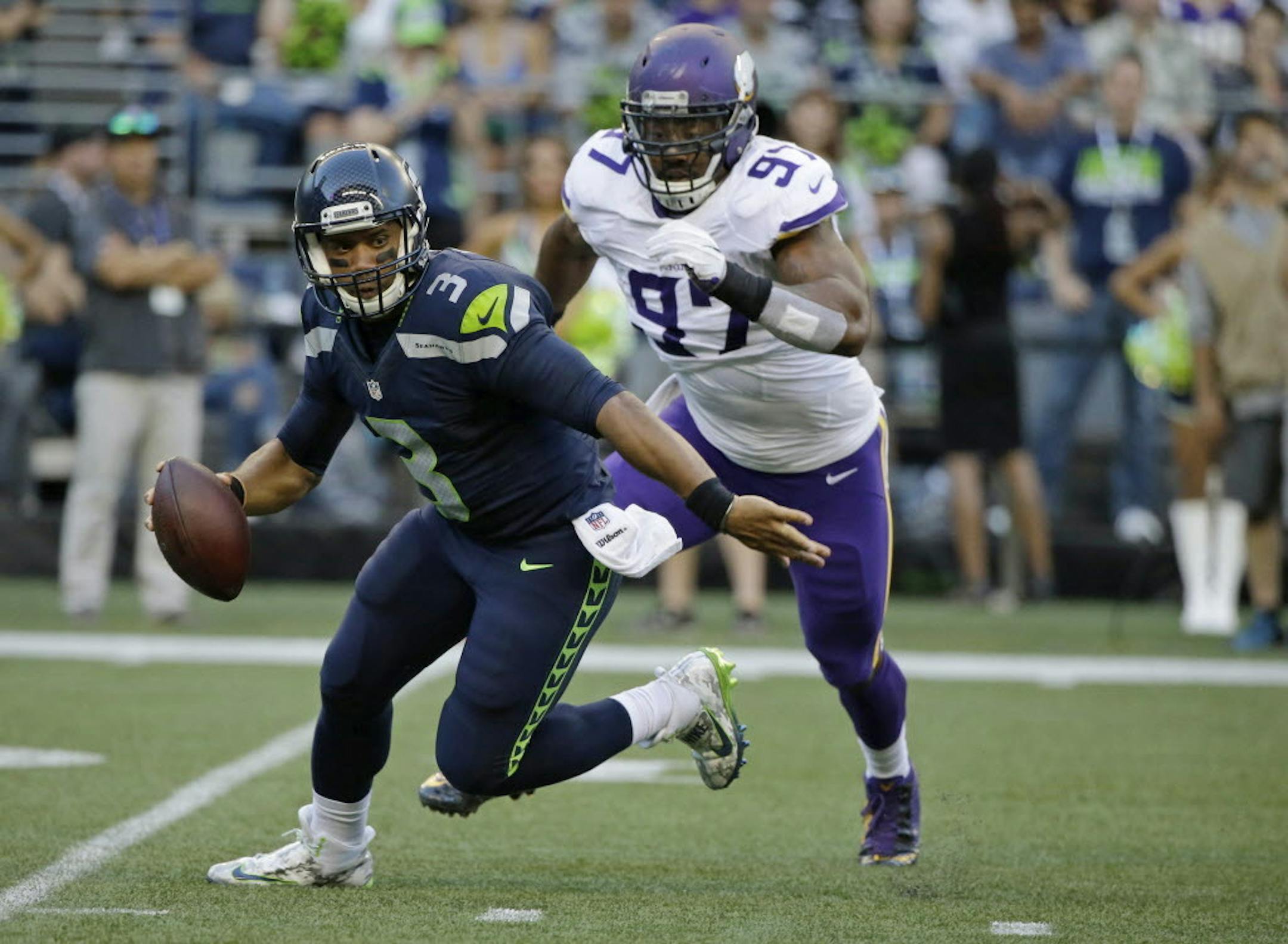 The Vikings defense got an early test against one of the NFL's best dual threats, Russell Wilson, in Thursday night's 18-11 preseason victory in Seattle.