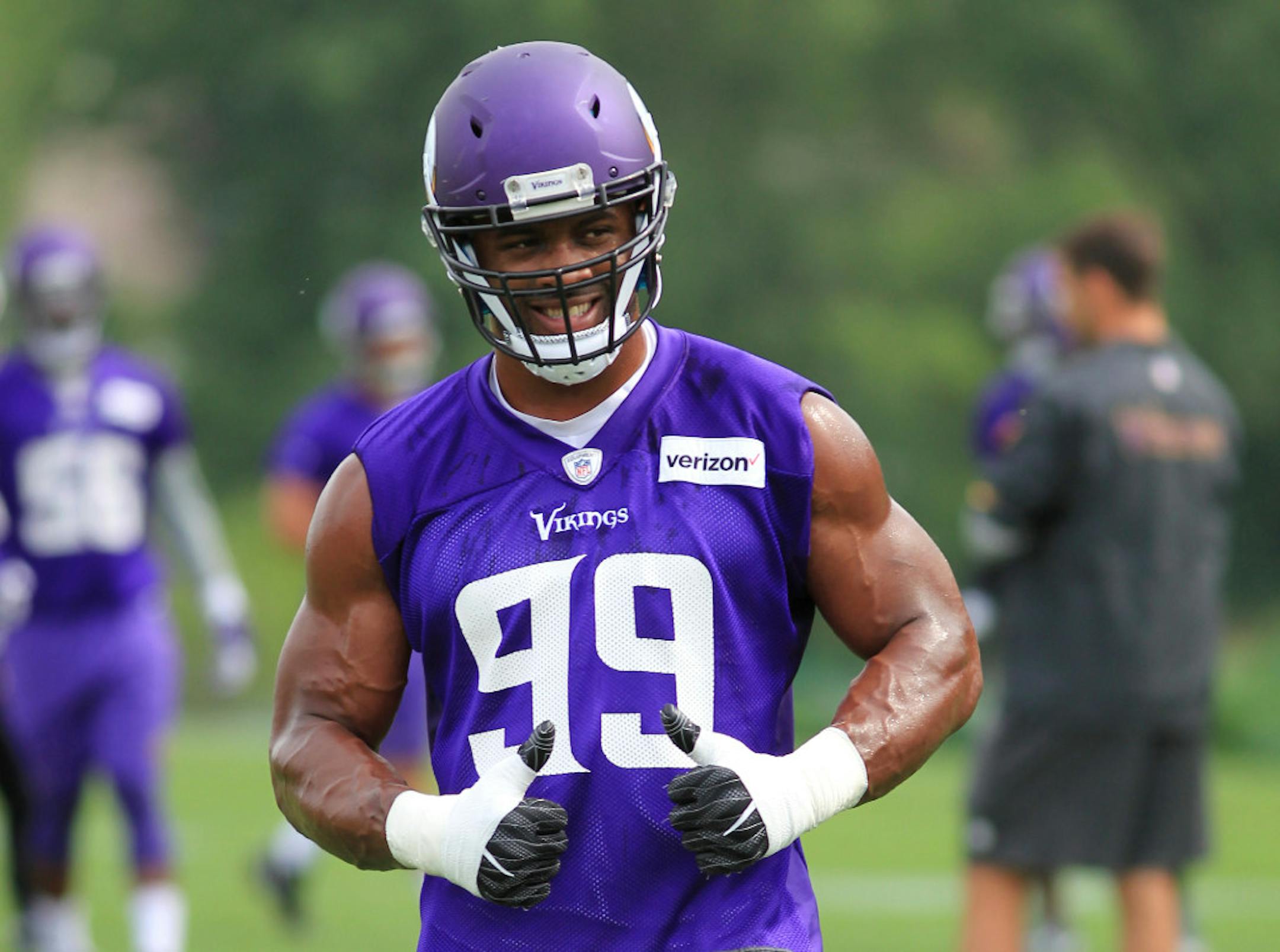 MANKATO — If you're placing an opening bet on the NFL's Defensive Player of the Year, the odds for Jadaveon Clowney and Danielle Hunter are the same, at least at Bovada Sportsbook.