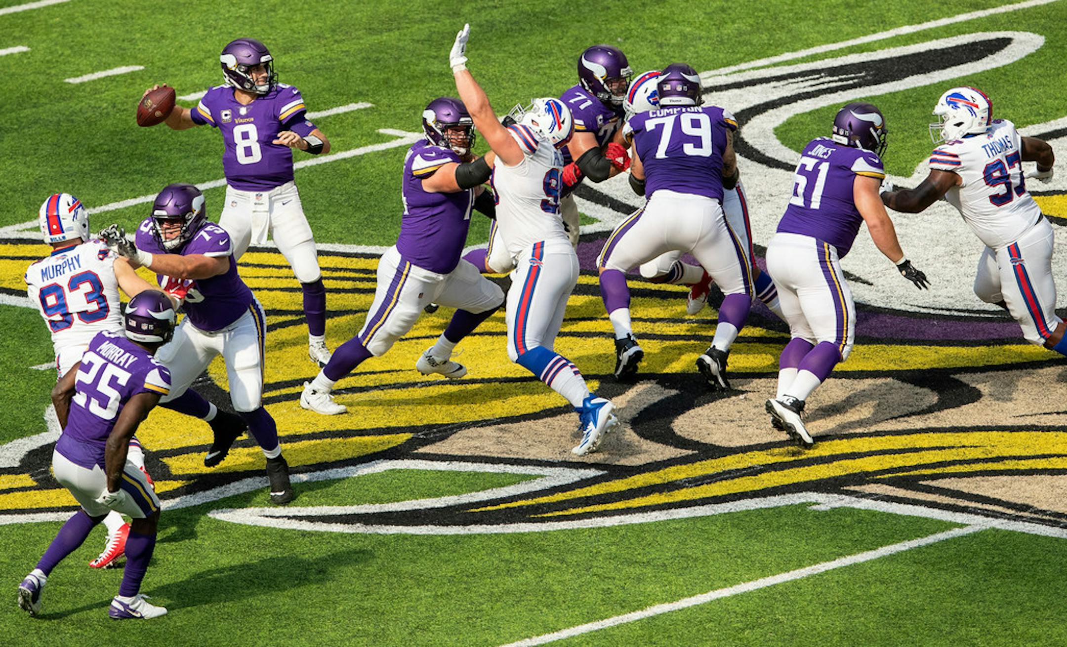 2. Pass protection leaks sprung from everywhere, but no more than from left tackle Riley Reiff. He was pegged with a league-high 12 pressures allowed, according to Pro Football Focus, as he struggled mightily with Bills edge rusher Jerry Hughes. Remmers also had a forgettable day, surrendering the initial pressure on Cousins' first fumble, the sack to Bills defensive tackle Kyle Williams and he was overpowered by defensive tackle Harrison Phillips on a one-yard loss from Latavius Murray. Running back Mike Boone whiffed on a blitz pickup during the fourth sack of Cousins.