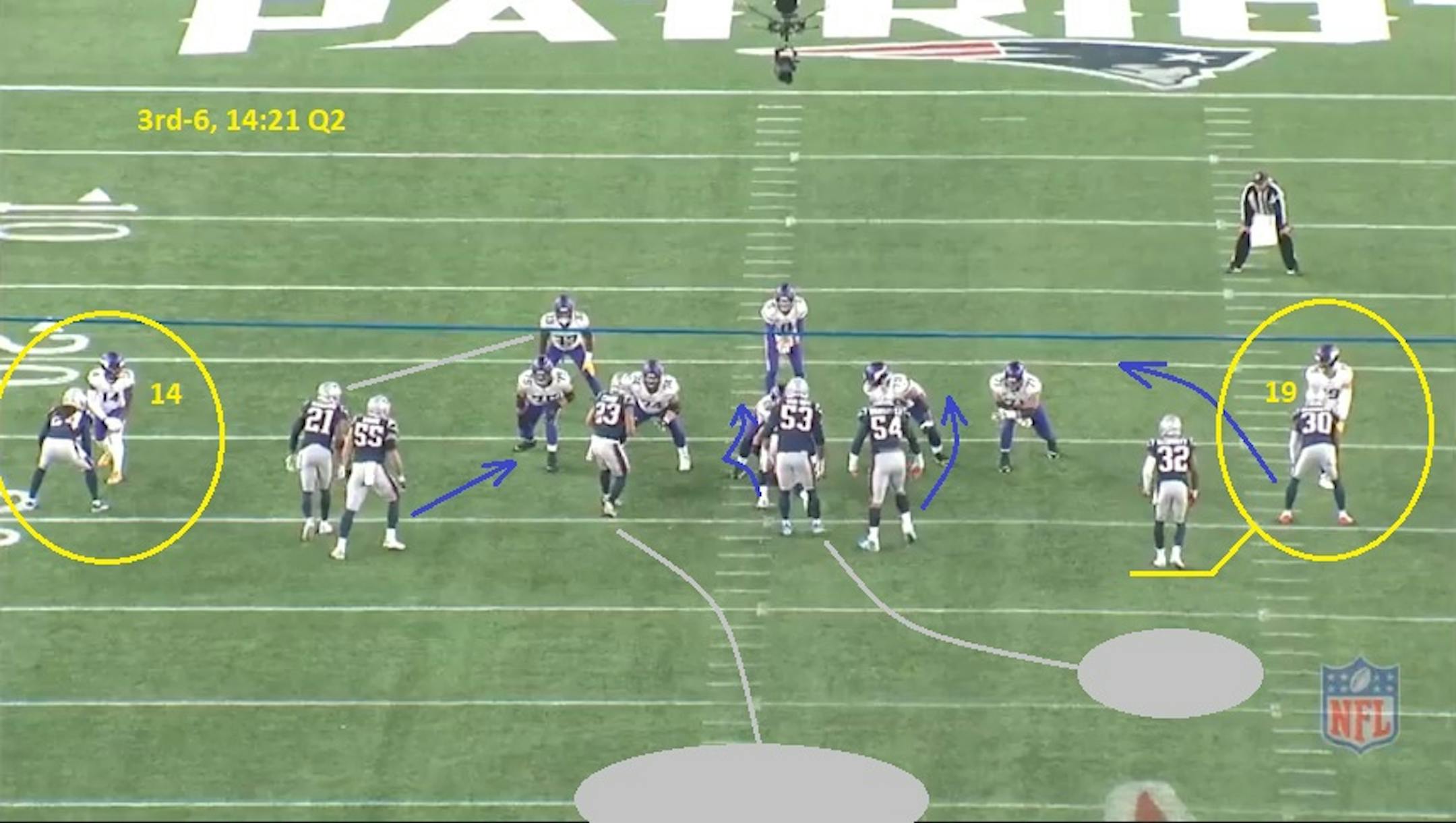 The Vikings offensive line's issues against twists (or 'stunts') by opposing defensive fronts has been on display throughout this season. The Patriots undoubtedly saw this and turned it up a notch.