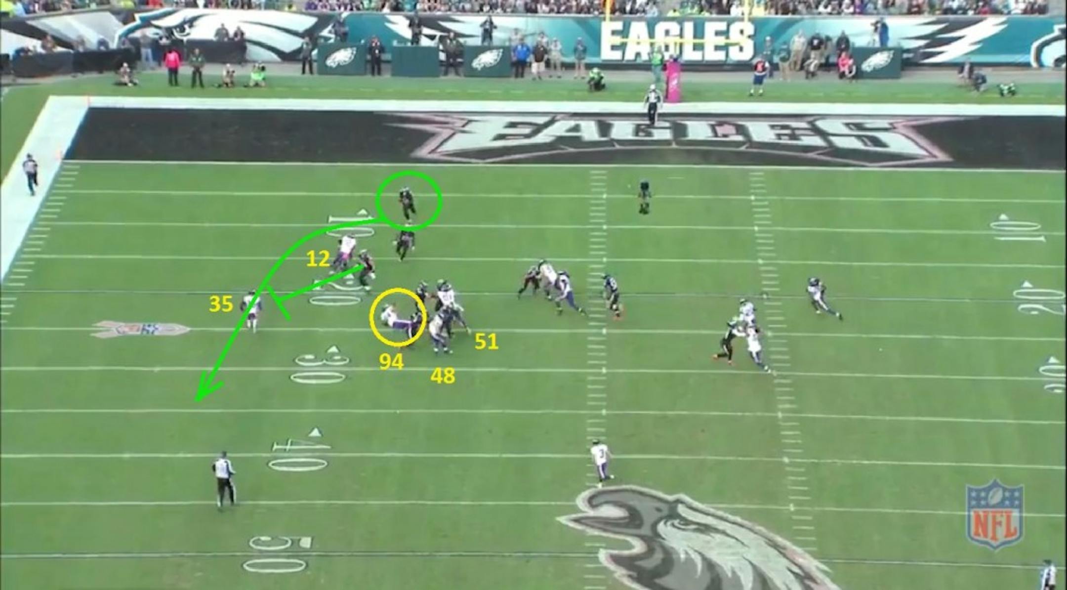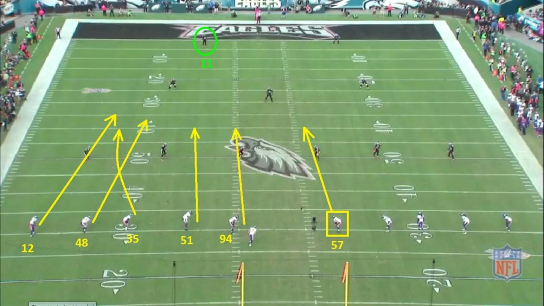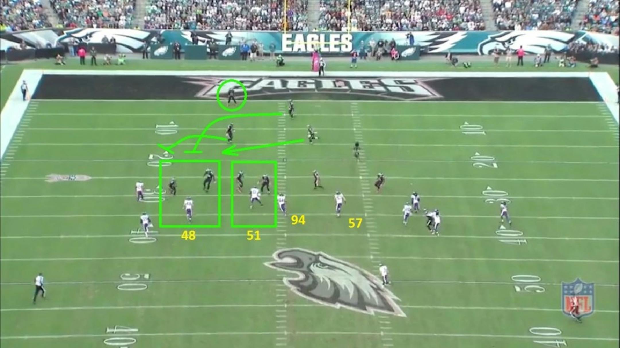 From the backside of the play, Vikings linebacker and special teams ace Audie Cole saw the Eagles' blocking scheme come together. A pair of double teams walled off the Vikings' inside help, widening the crease for Eagles returner Josh Huff.