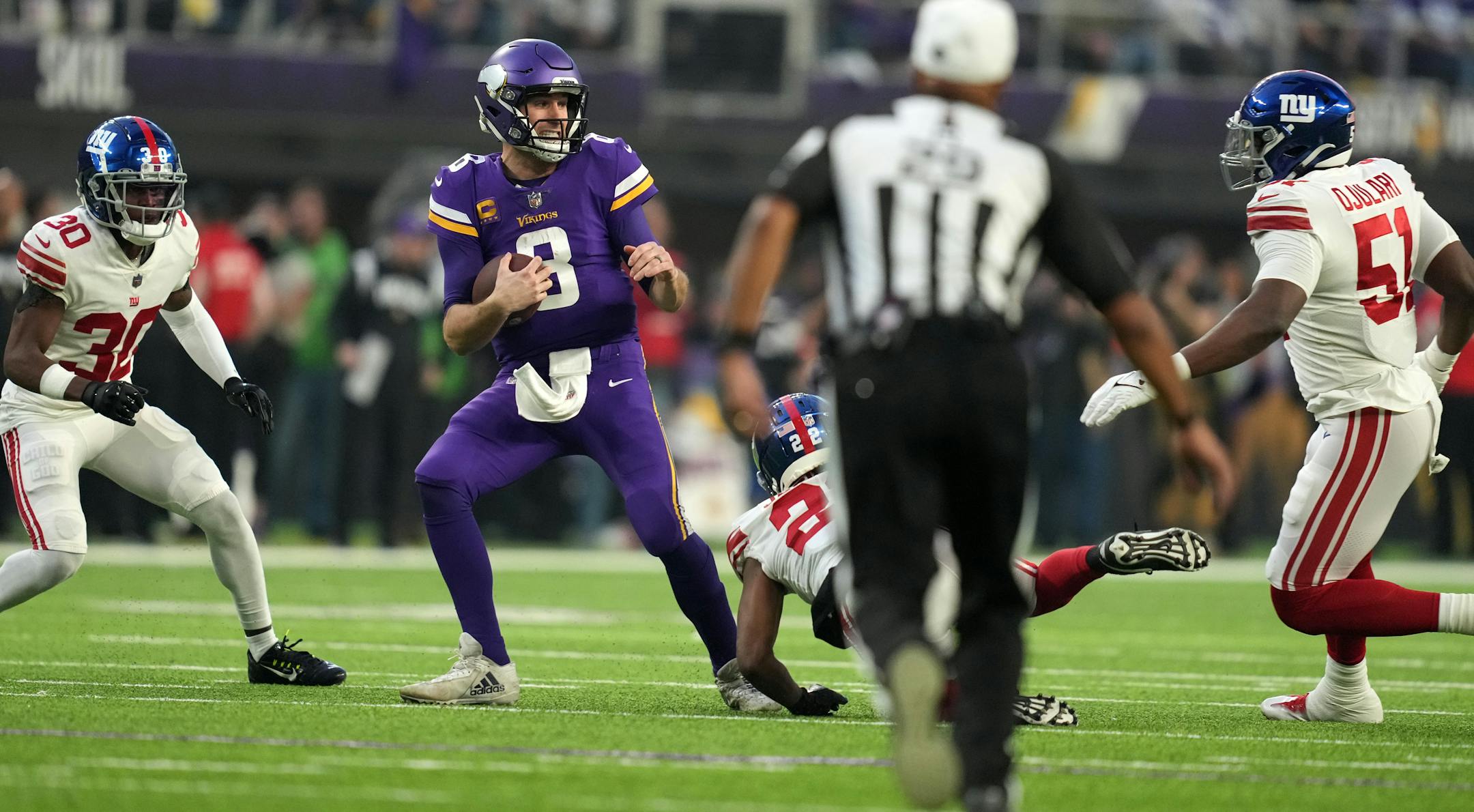 The Giants were leading by that touchdown, facing third-and-15 at their 41, and with the Vikings having used their three timeouts during this New York possession.