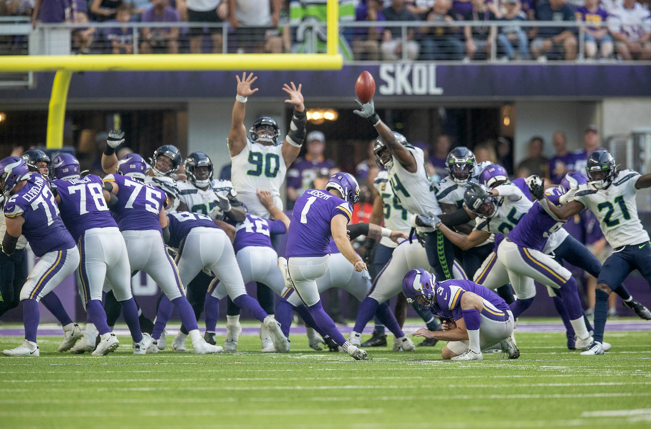4th qtr, 0:00: Joseph, 54-yd. field goal. Vikings 19-17