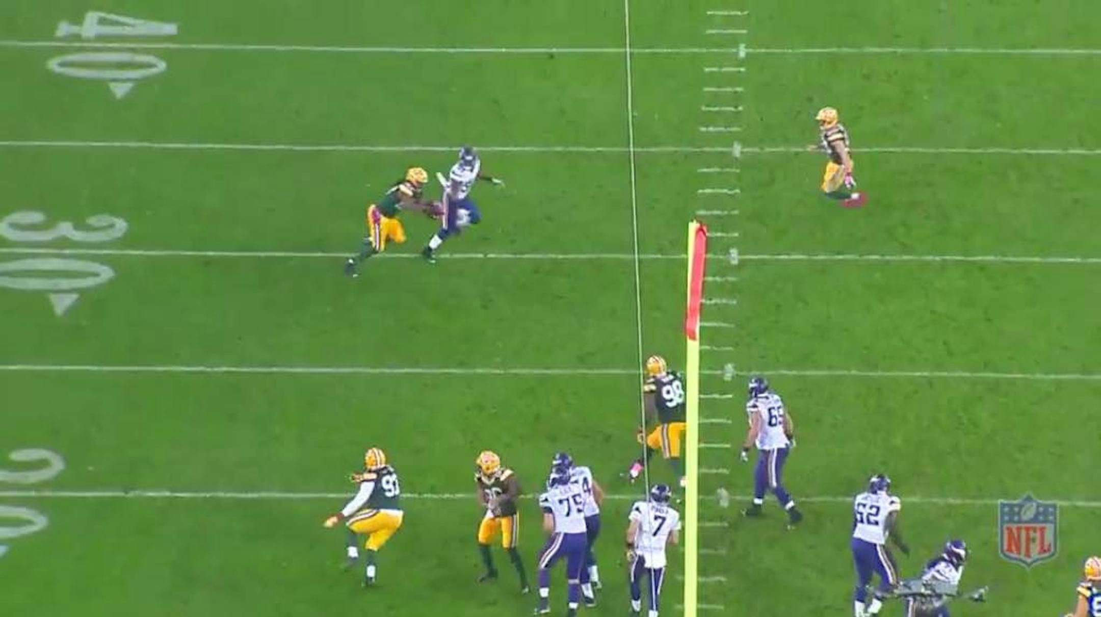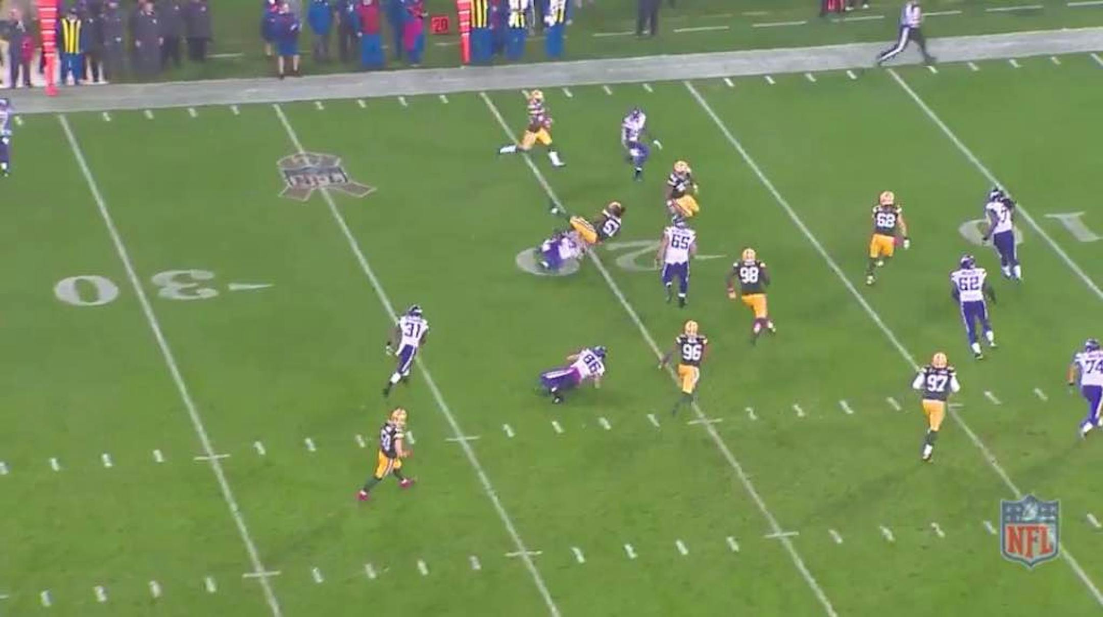 At this point is when McKinnon breaks and Ponder appears set to throw, but he holds onto the ball.