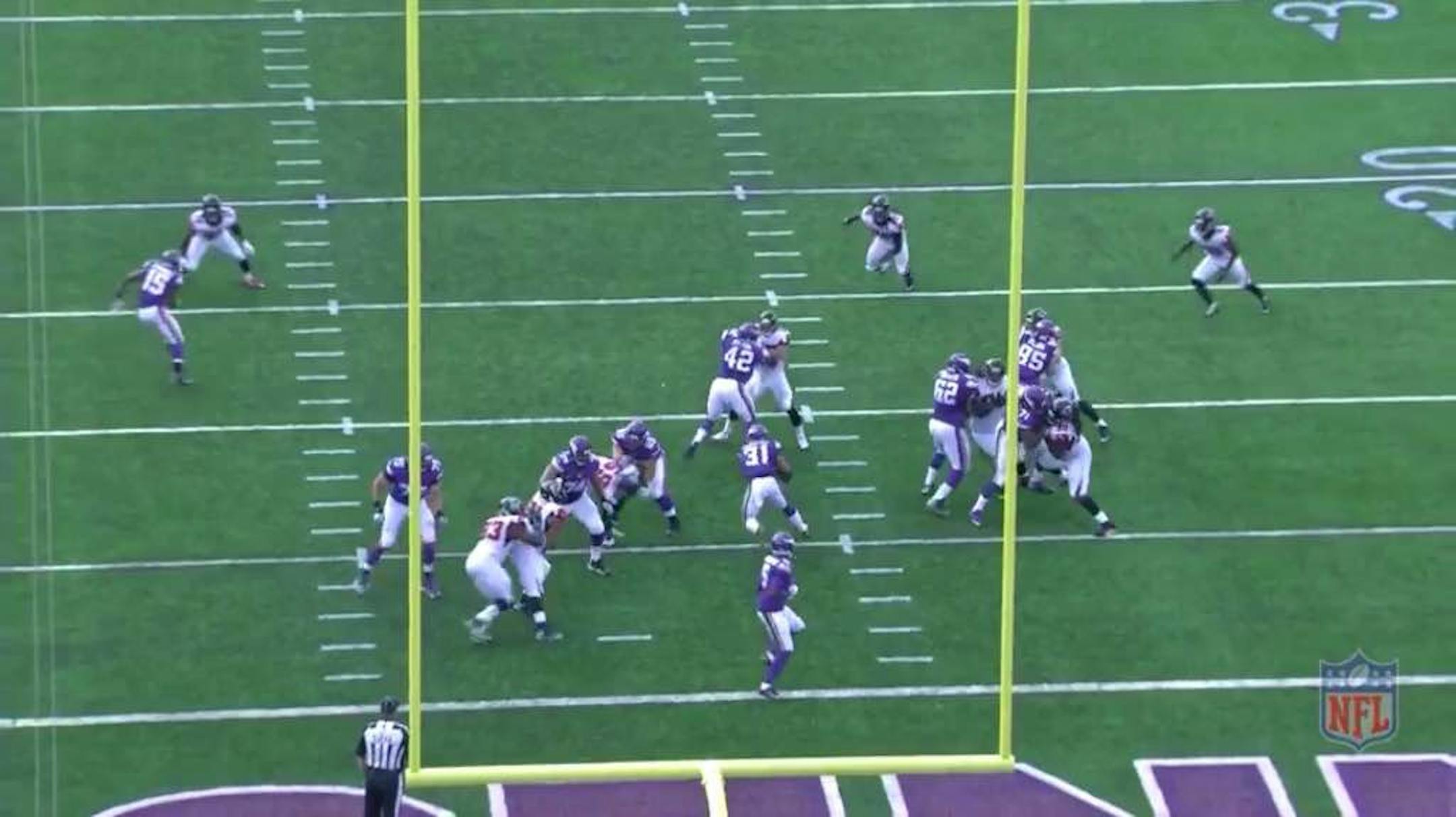 The result: McKinnon breaks off a career-long 55-yard run on his first carry to the Falcons 37 to put the Vikings in scoring position.