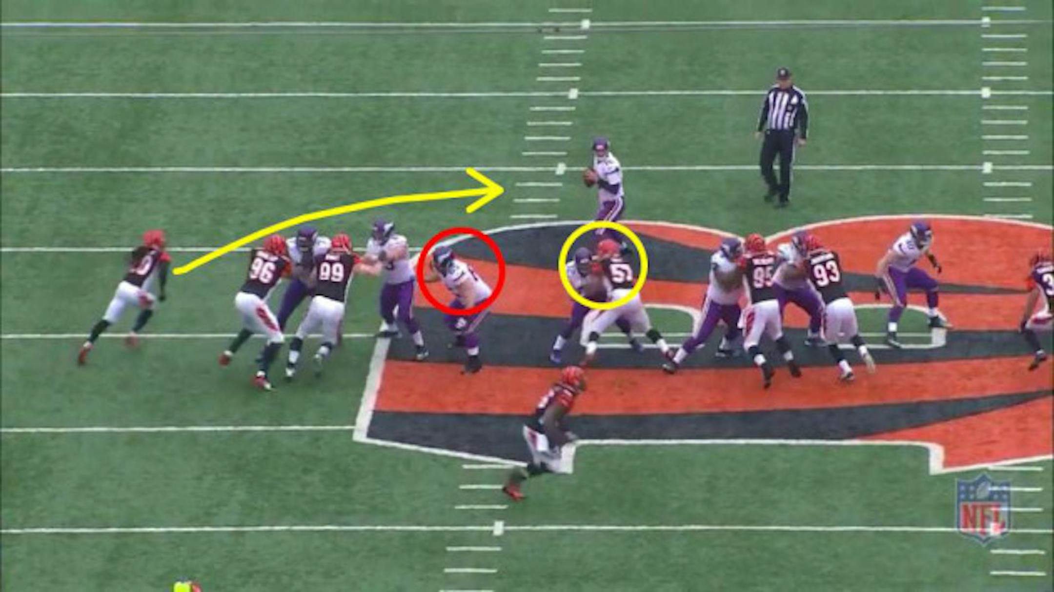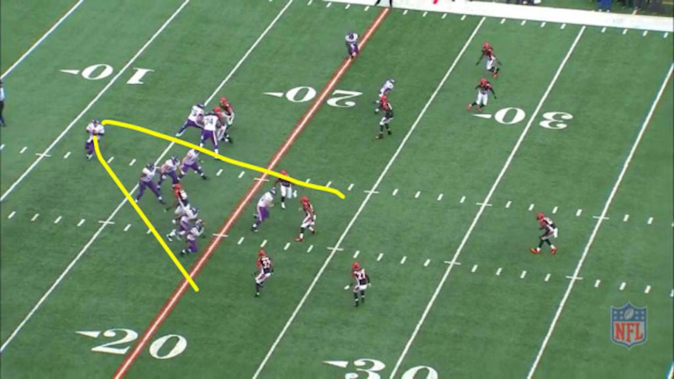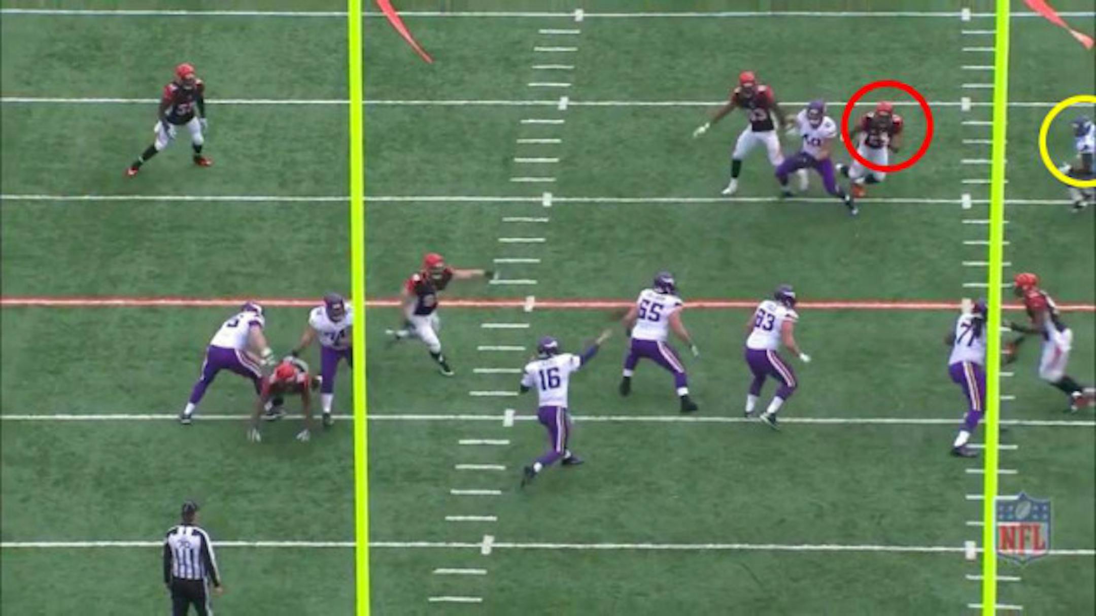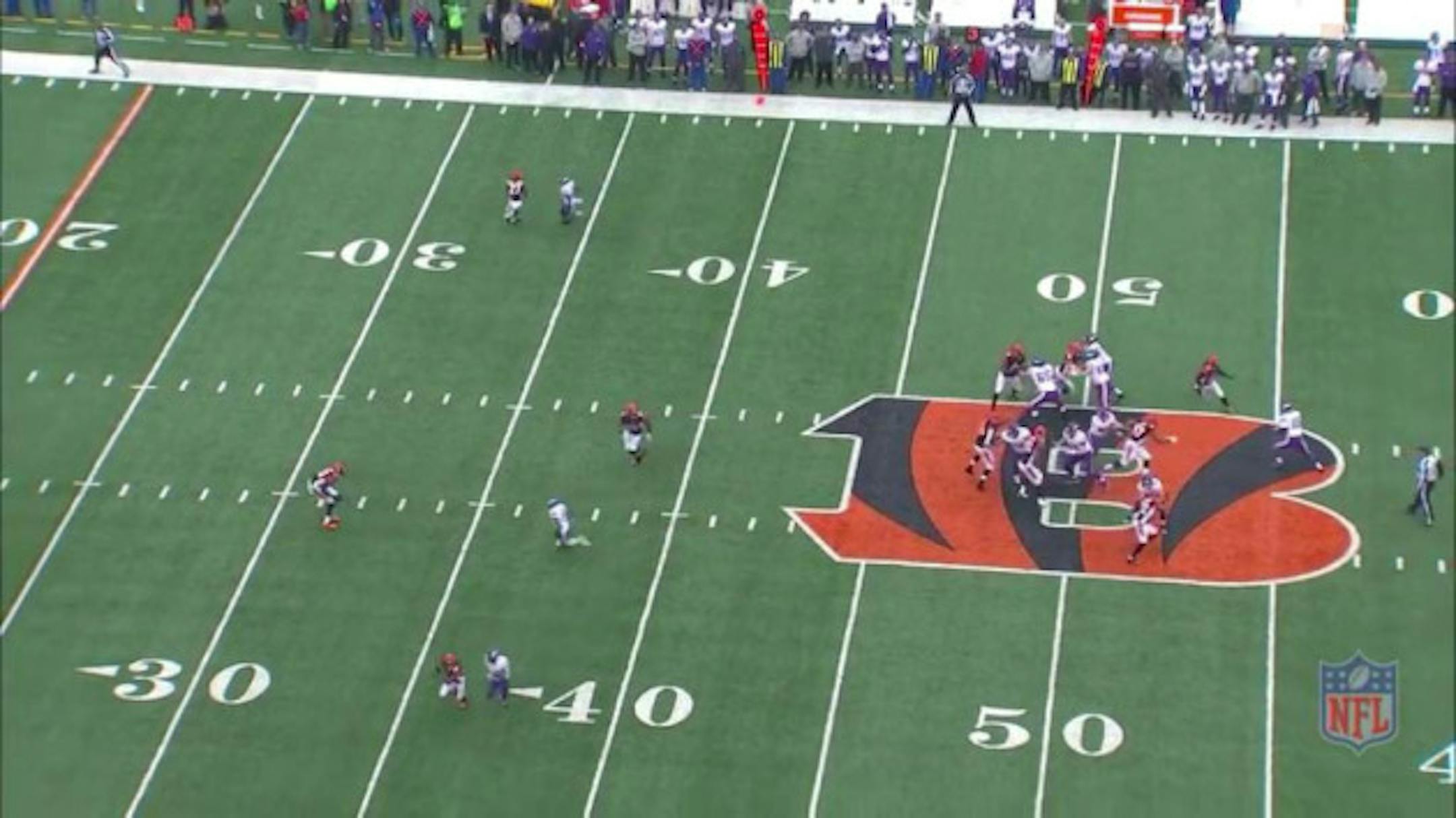 The situation: On the opening drive, the Vikings faced a 3rd and 6 at the Bengals' 45. They attempted to convert on pass play.