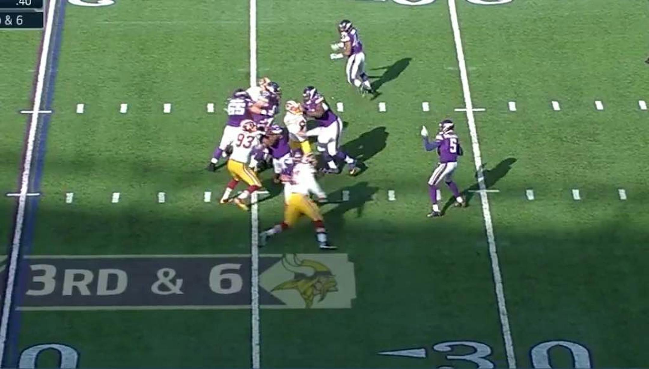 The situation: We revert back to Week 9 for this week's Vikings Rewind. Down 10-0 to Washington with 42 seconds left in the first half, the Vikings face a 3rd and 6 and Washington's 20.
